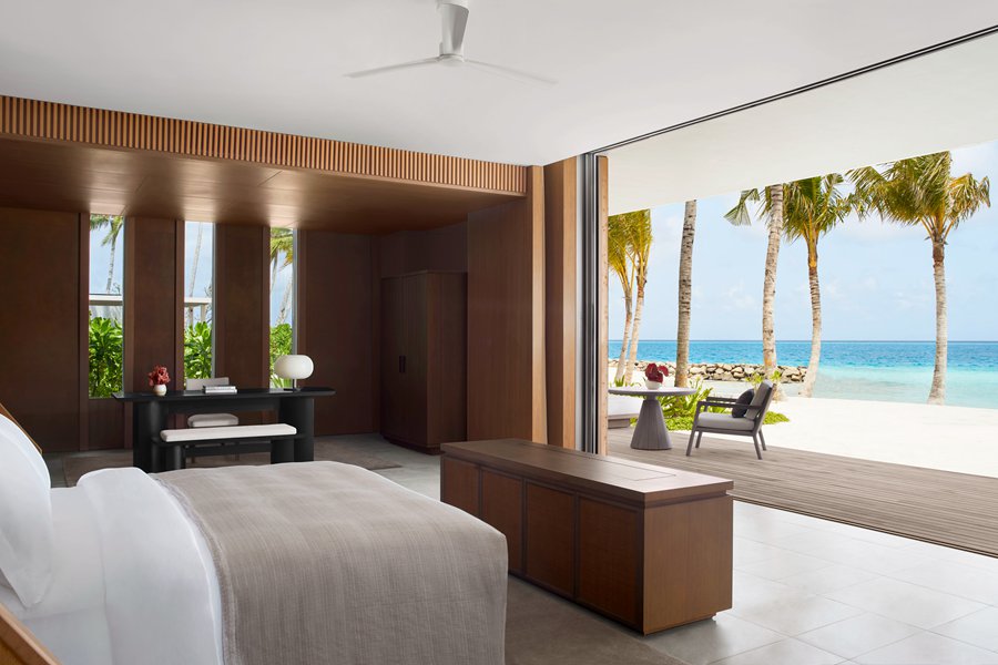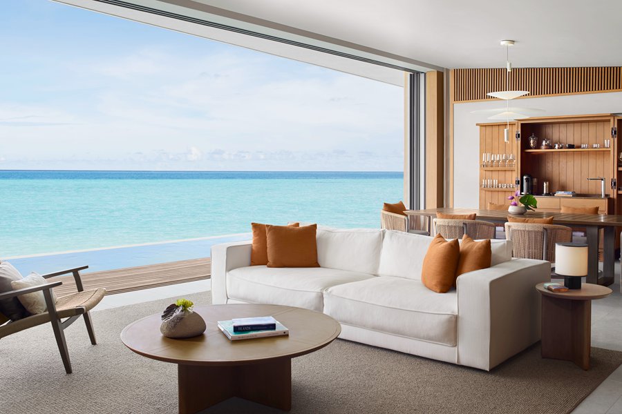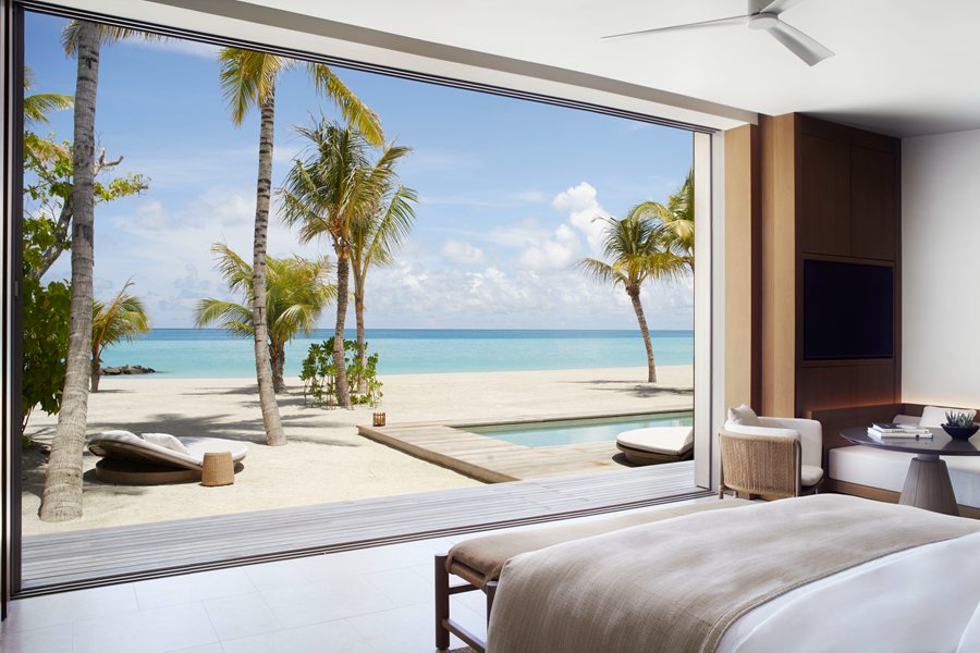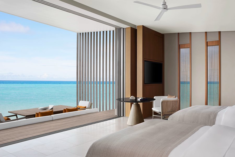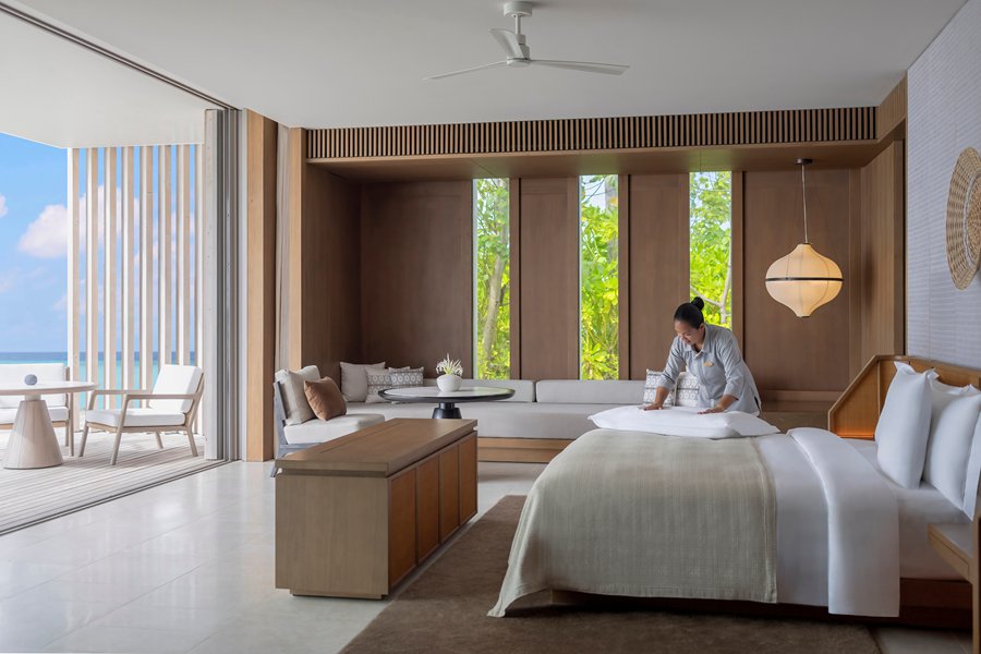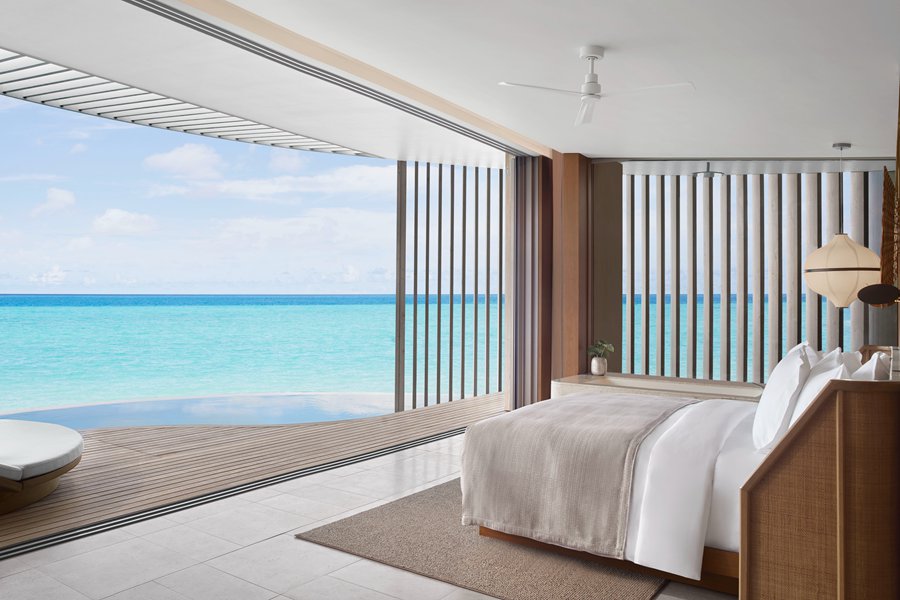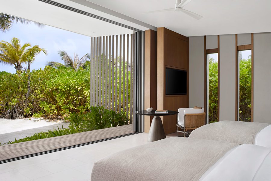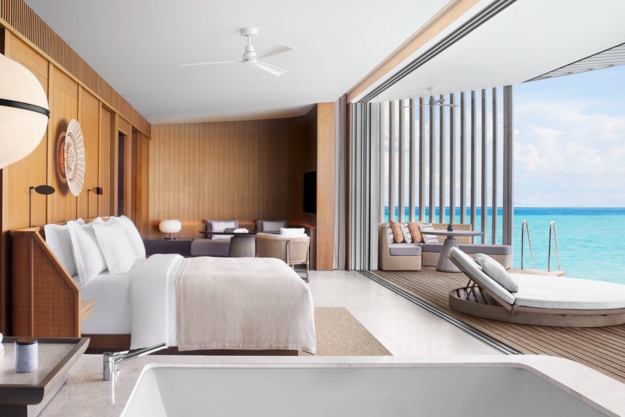 房型介绍:可直接通往宽阔的白色沙滩,带无边泳池的一体化日光浴平台,自行车每位客人一辆,可在入住期间探索度假村。随时提供免费咖啡、茶和瓶装水,Honor Bar 小吃和非酒精饮料。带流媒体服务和卫星频道的 55 英寸液晶电视,适用于室内和室外娱乐的 BOSE 音频扬声器。浴室配有奢华的 Bamford 卫浴用品。岛屿管家服务 24 小时别墅内用餐、夜床服务、洗衣和干洗服务、别墅内咖啡机和茶壶、抵达当天免费熨烫服务,每栋别墅最多 8 件。