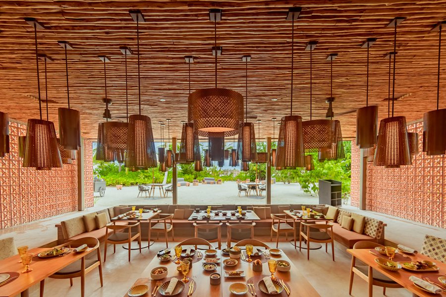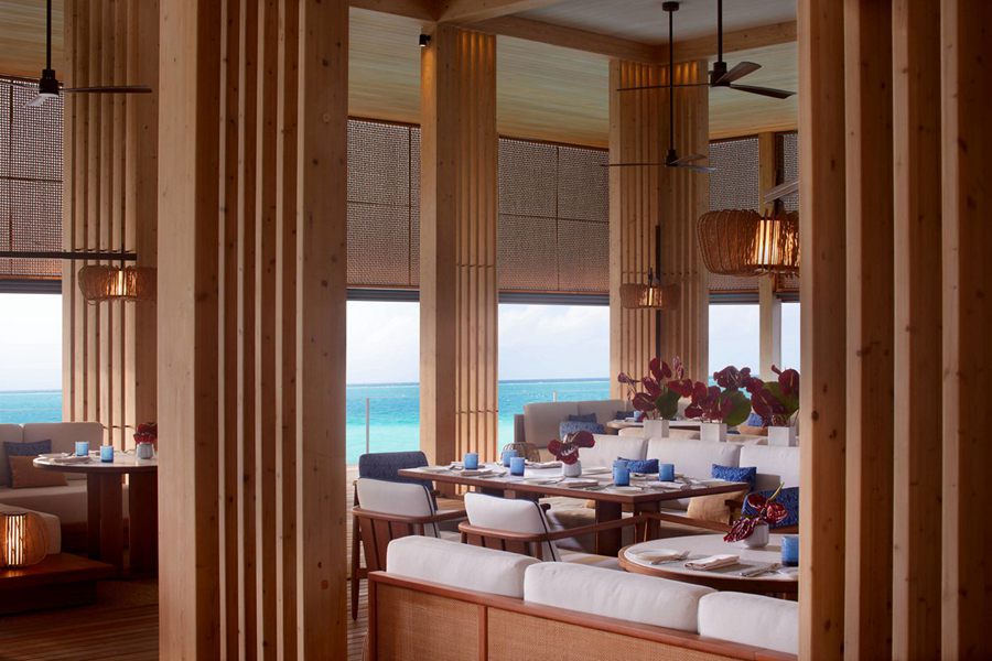 餐厅介绍:位于2个大岛相连的中心小岛上,大部分为位于海上,主要提供意大利美食。这是整个度假村重要的客厅社交场所。