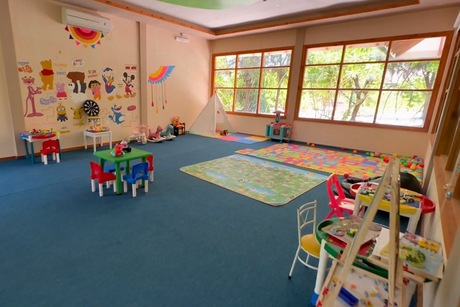 活动介绍:面积不但大,居然餐厅也贴心配备了儿童卡通椅。