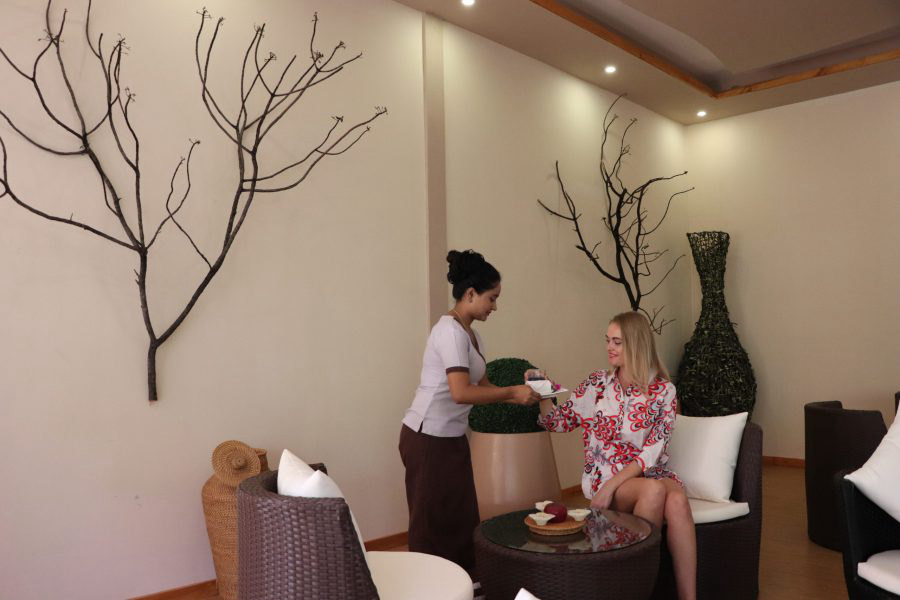 活动介绍:位于岛屿中心位置,设有18间理疗师,配有桑拿、蒸汽房和按摩浴缸。如果你的脚走累了,足疗师在游泳池附近的休息室为你服务。更有完善的健身房等待你消耗因丰盛自助餐积累的额外体重。