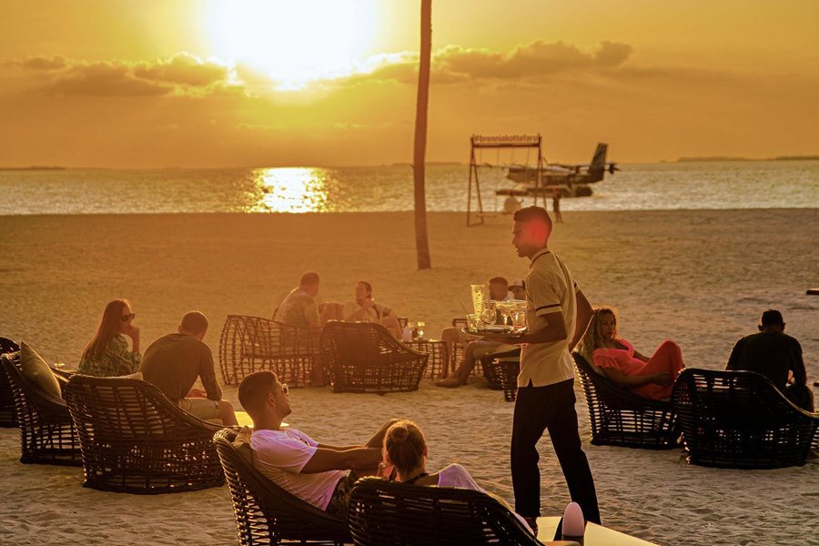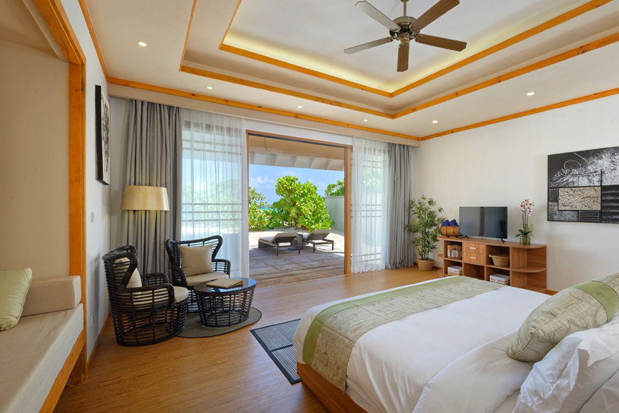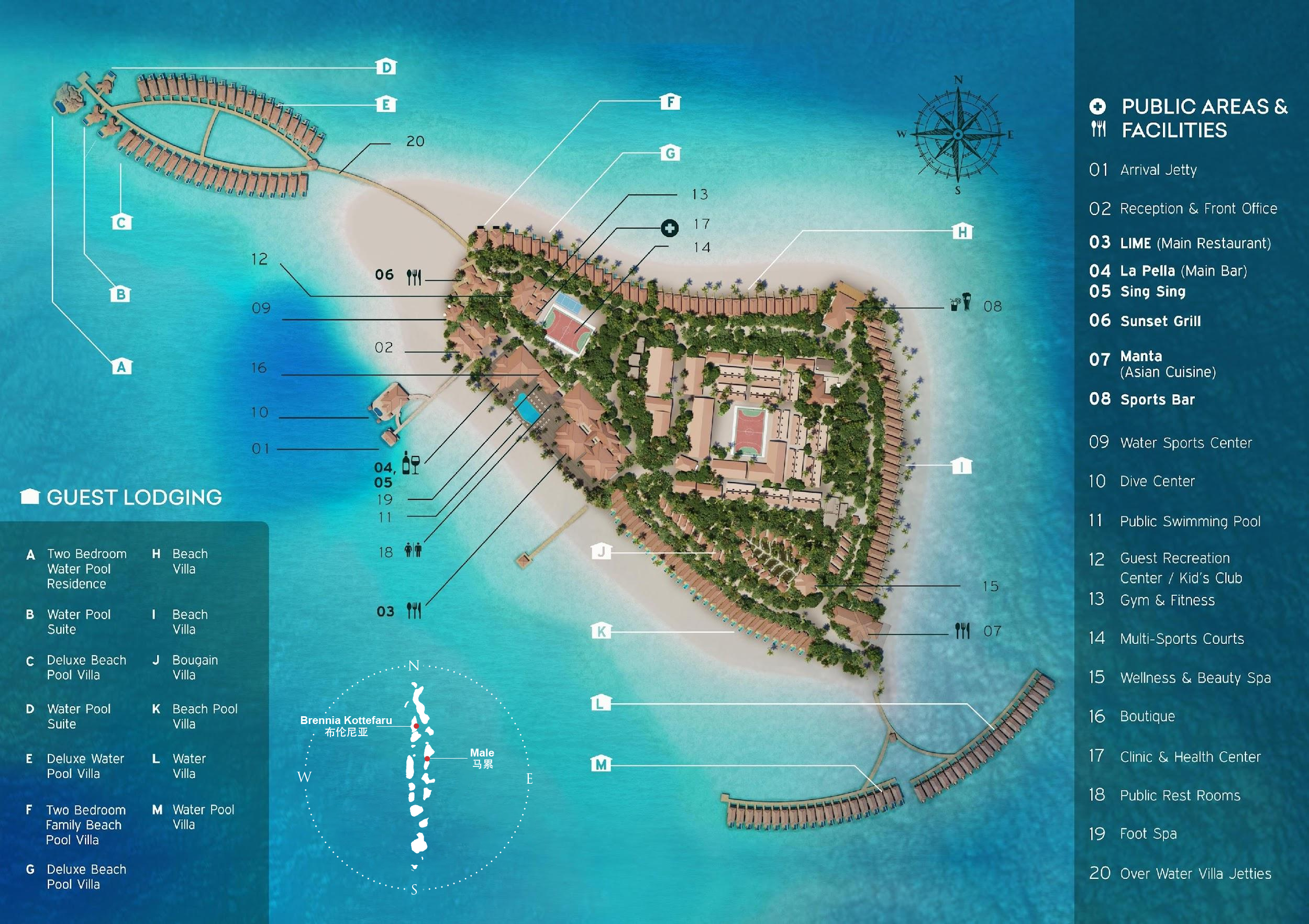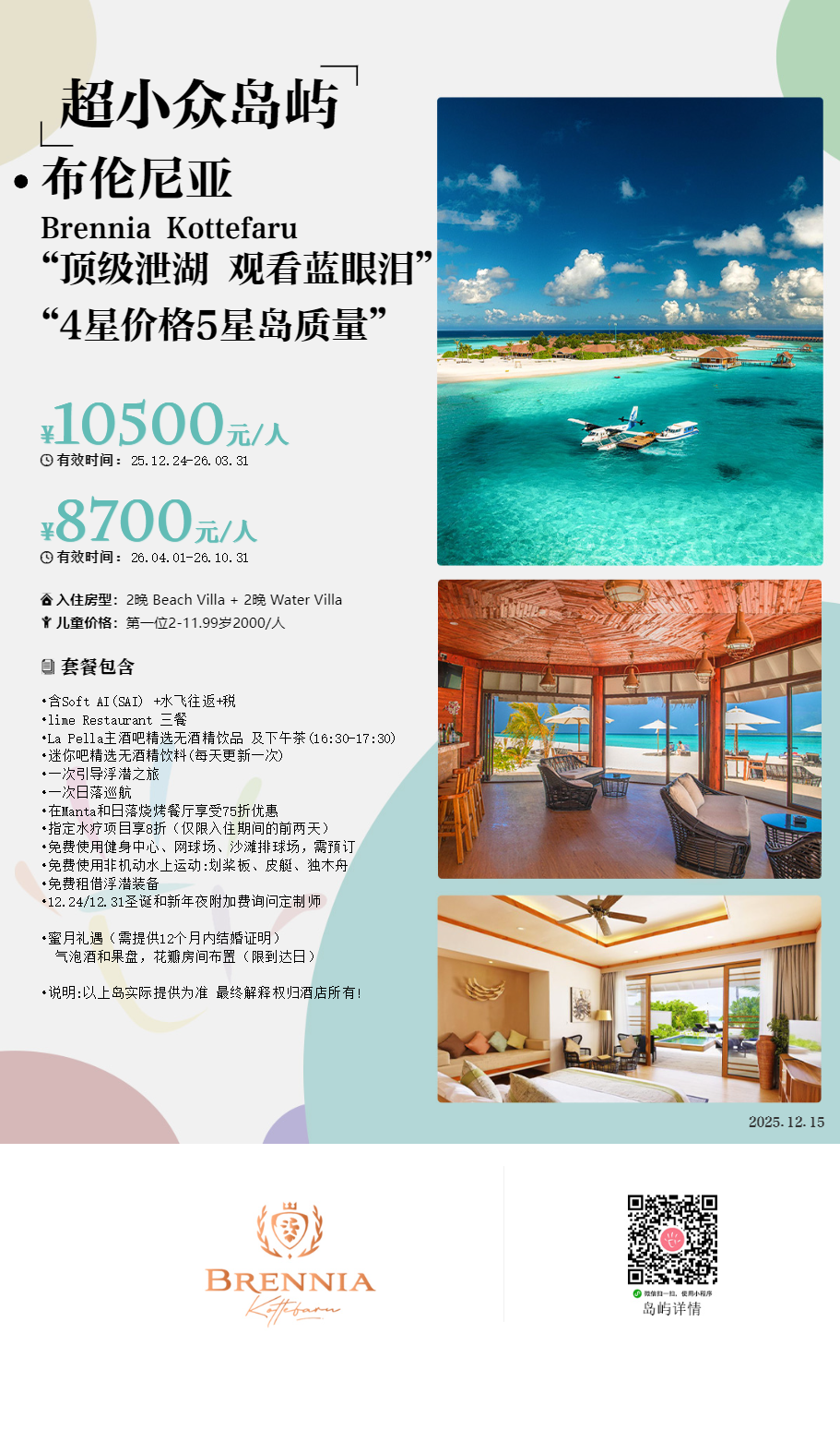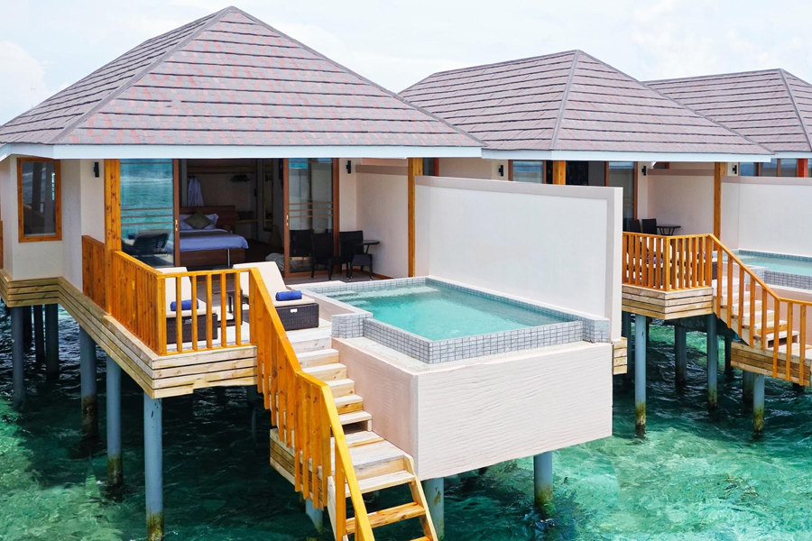 布伦尼亚岛Brennia Kottefaru,又名布兰妮岛,没错!又是岛主安娜音译命名。度假村从开业之初就定位6星,不过酒店的主营市场在欧美,所以针对中国市场一直采用的疫情期间的抄底Offer,非常划算。乘坐水上飞机40分钟即可上岛,仅仅100多间别墅,属于中小型岛屿,旁边还有一个无人小岛,伴随着一块拖尾沙滩,非常浪漫。