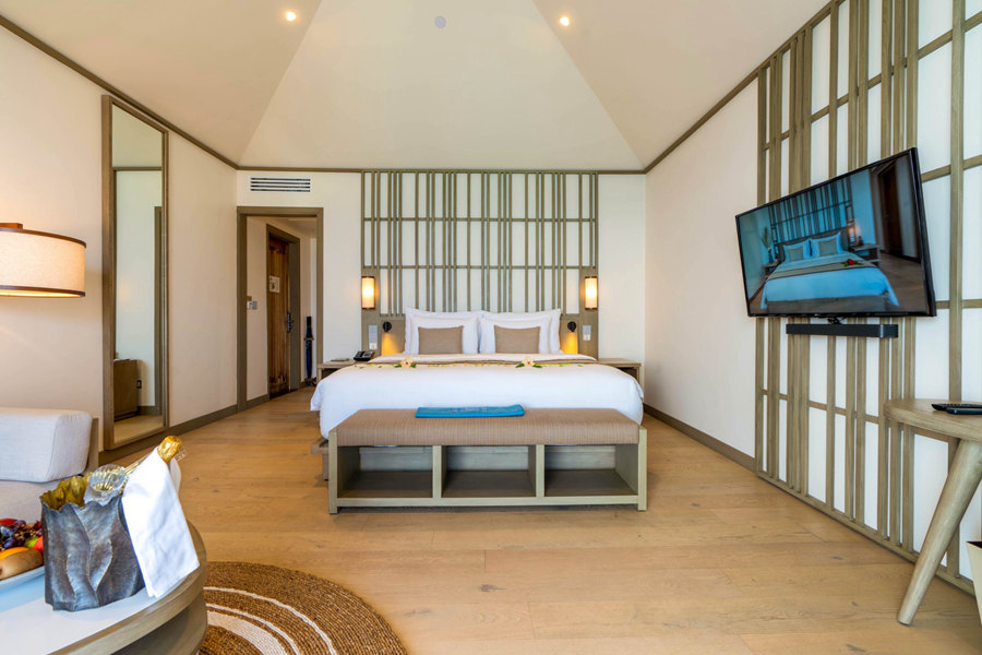 房型介绍:泻湖泳池别墅提供宁静的悠闲和舒适的放纵。别墅设计优雅,设有水上甲板和私人无边泳池。它们是这片绿松石泻湖上的终极浪漫世外桃源,让您在美妙的水上环境中放松身心。