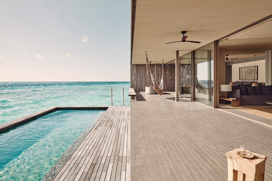 马尔代夫柏典Patina Maldives,嘉佩乐的全新子品牌,乘坐快艇45分钟即可到达。这也是柏典品牌在全球的首秀,所以具有标杆意义。酒店品牌定位年轻新潮和艺术,由巴西著名建筑公司Studio MK27操刀设计,100%纯太阳能儿童俱乐部,风格融入了极简和轻奢。如果你最求低奢、艺术和环保,那么柏典是你可以种草的酒店之一。