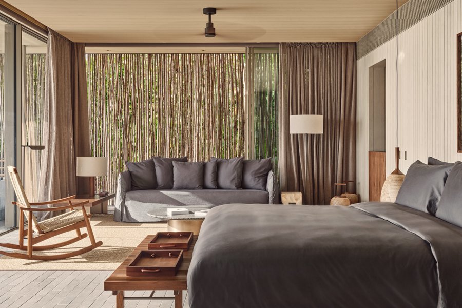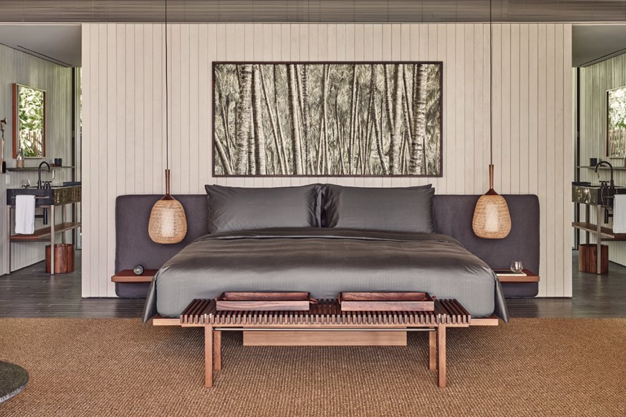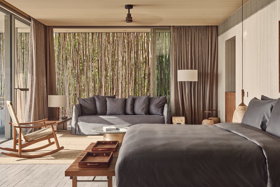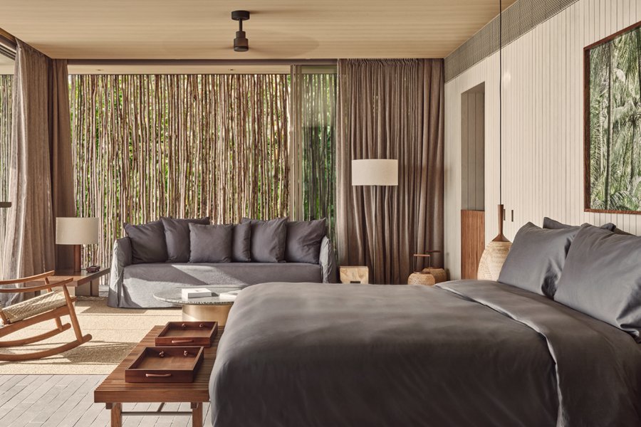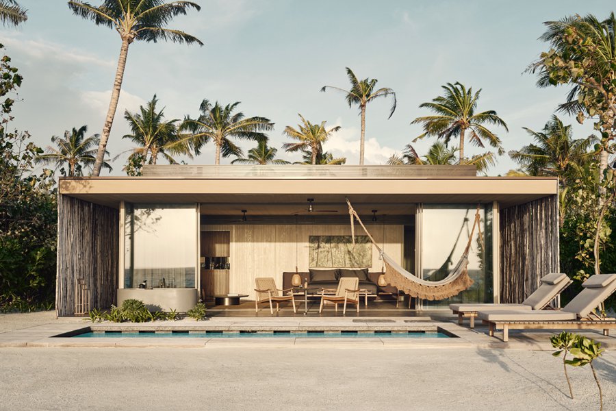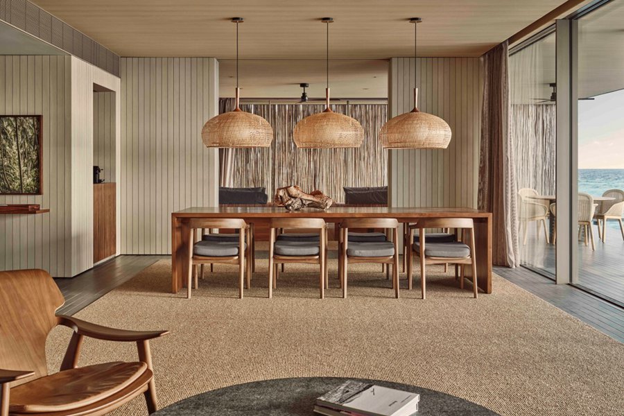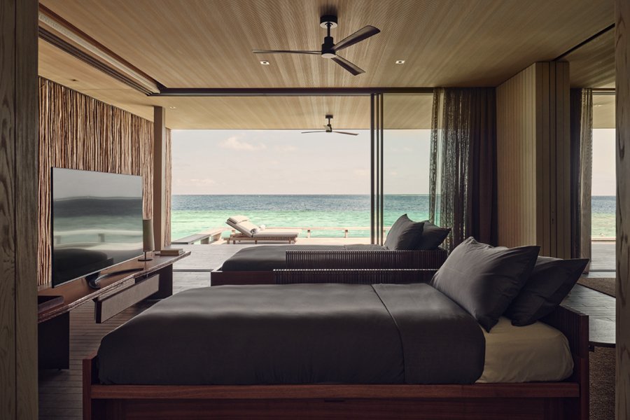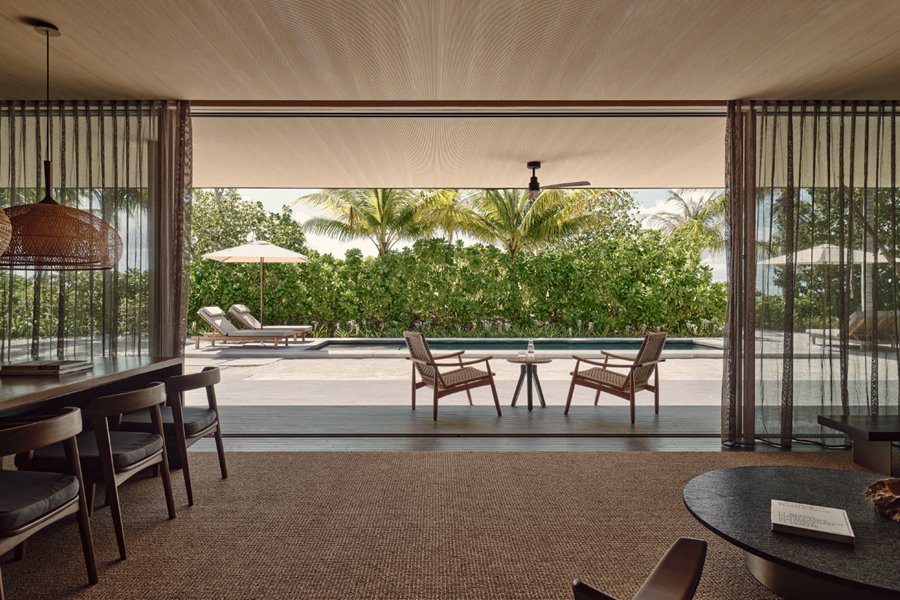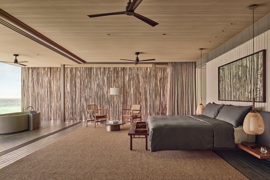 房型介绍:位于沙滩边,分布在岛屿各处,就算是基础沙滩别墅,面积也达到了惊人的240平米,堪比普通岛屿的顶级沙屋房型。周围郁郁葱葱的原生热带植物,这种自然带来隐私和宁静,三面落地窗和大开间模糊了室内外空间,设计非常讨现代人的审美。