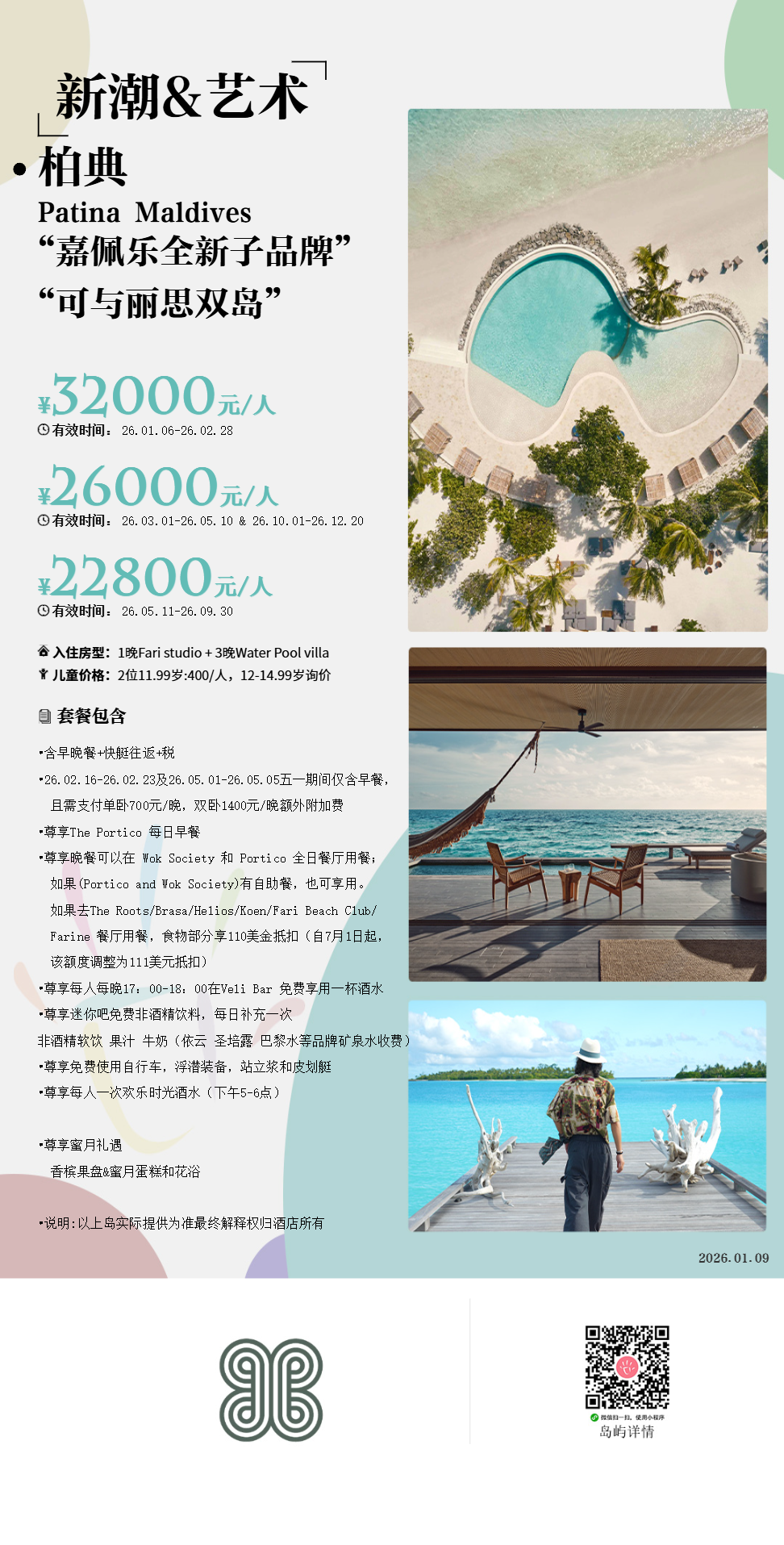 于2021 年 5 月开业,是座人工岛,但设计师的理念是“抹去任何人工建造的痕迹,让岛上的环境来美化酒店”,所以你上岛将感受到的是座纯粹又野性的自然美度假岛。它旁边是同样很优秀的丽思卡尔顿酒店以及预计 2025 年开业的嘉佩乐酒店,三岛之间串门只需 10 分钟,以后三岛游很轻松。