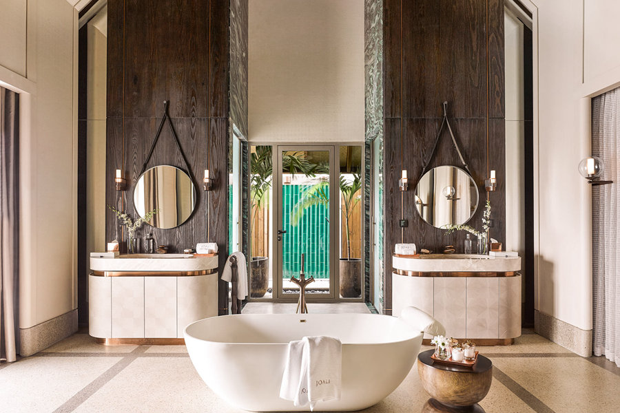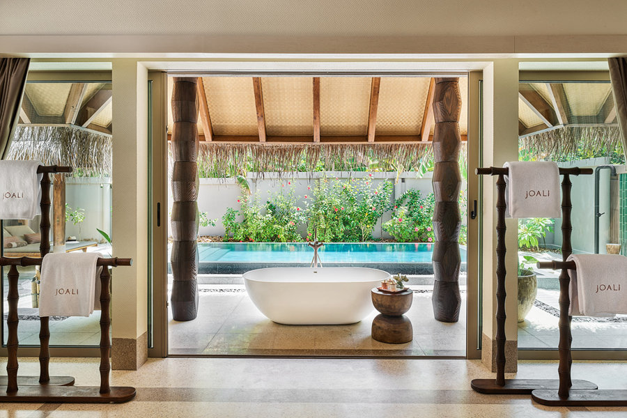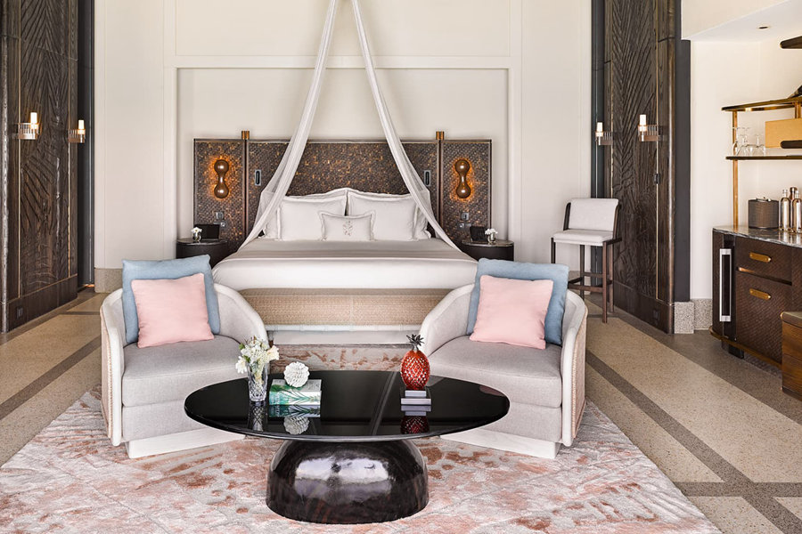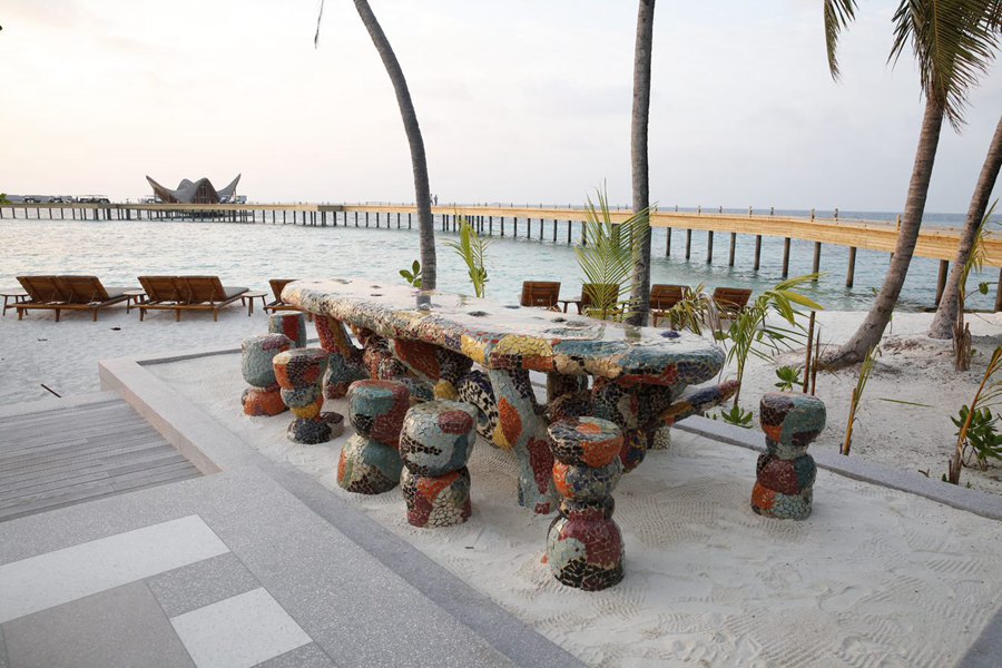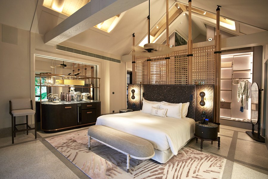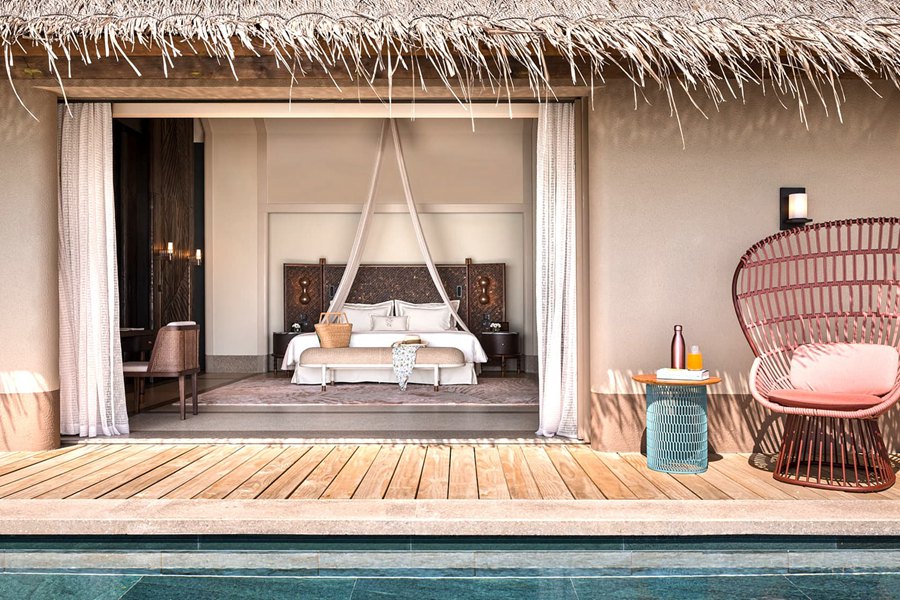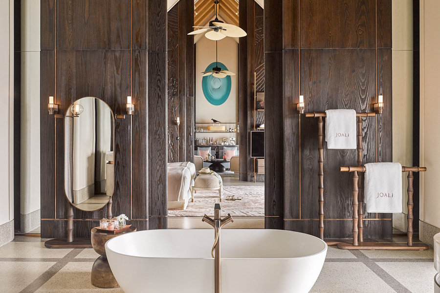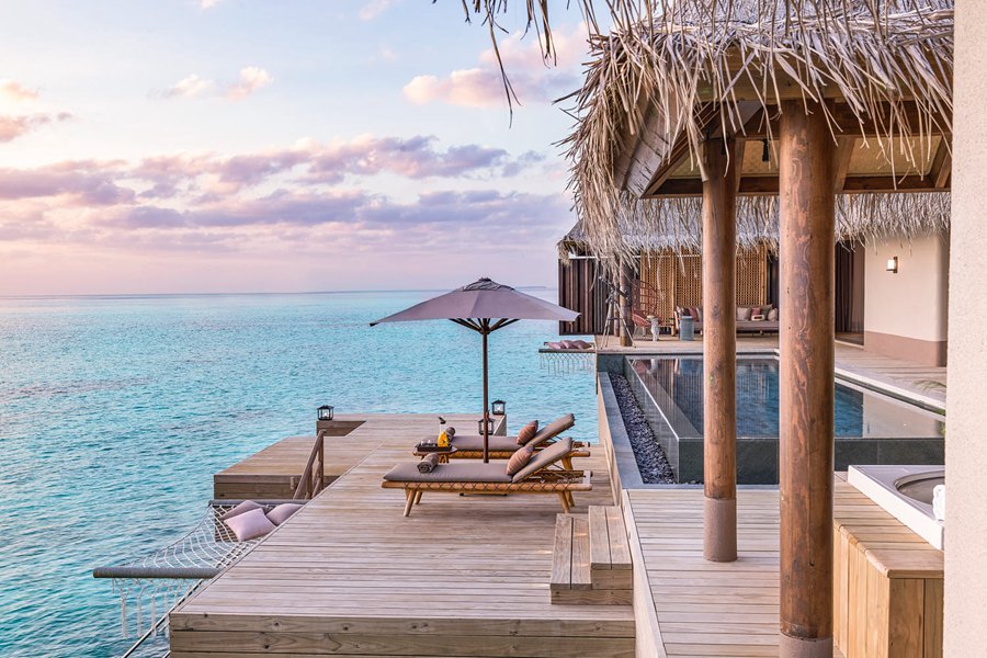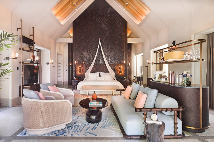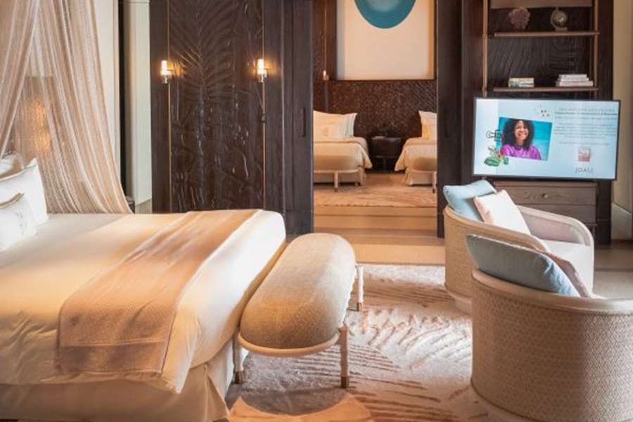 马尔代夫娇丽Joali Maldives,乘坐水上飞机40分钟或者内陆飞机转快艇55分钟即可到达。度假村由白马设计师操刀,所以常常被誉为“小白马”。相对于姐妹岛娇丽Being,娇丽的设计和色彩更为“浓妆艳抹”,犹如埃及艳后的寝宫,贵妇人一般。主打女性,马卡龙主色调,超高层高,无处不彰显宫殿和艺术的结合。洗漱用品欧舒丹系列,就连睡袍都是真丝日式风格,曾经多少人“顺走”这一物件,现在改为棉布材质。岛屿有一个很长的沙滩拖尾,随着潮起潮落顺着水屋一线若隐若现,犹如丝带。相较于娇丽Being,这儿接待儿童,拥有完善的儿童设施,适合家庭度假。无处不在的艺术,如果你是才女你一定要来娇丽,如果你想提高审美,更要来娇丽。