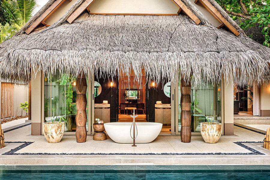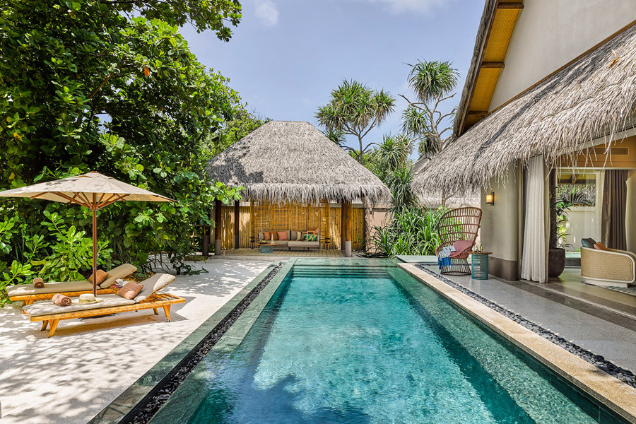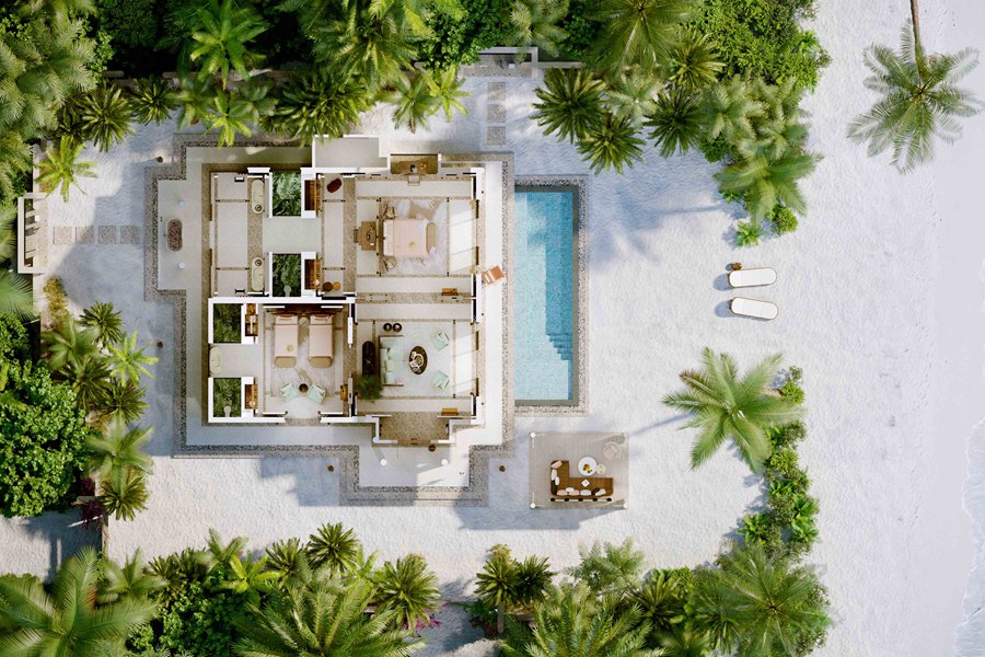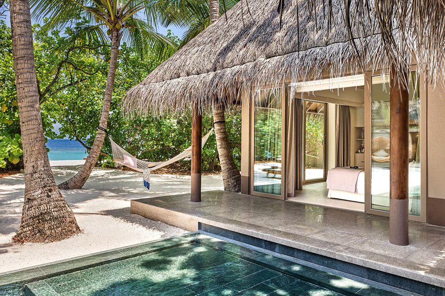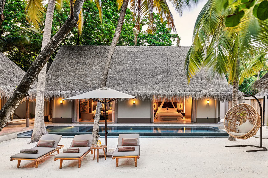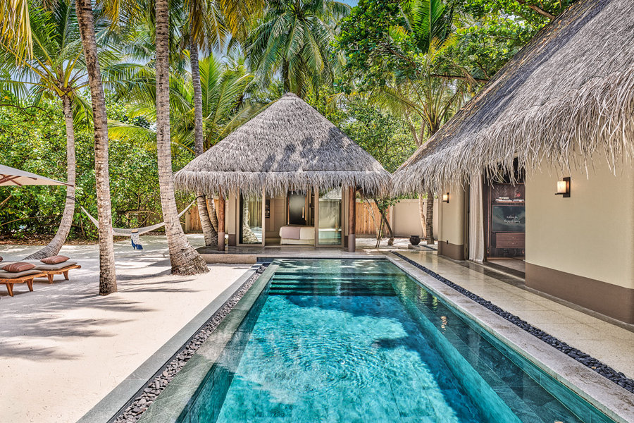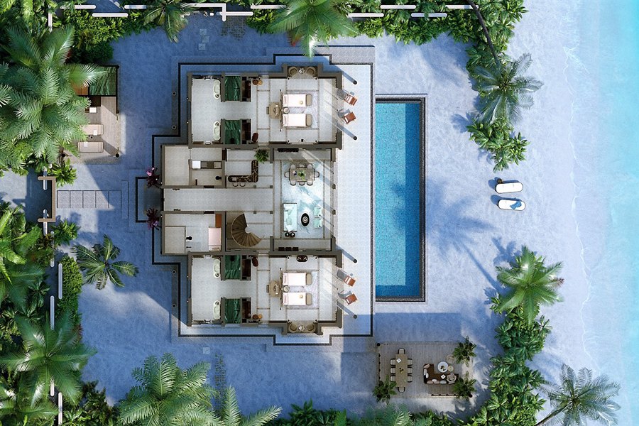 房型介绍:就算是基础的沙滩别墅,也拥有超大私人泳池,夸张的是室内外面积达到了近700平米。从我们豪华的一居室海滩别墅浸泡在海滩,花园和海景马尔代夫。精心挑选的艺术品,一个私人海滩花园和一个无限大的游泳池。