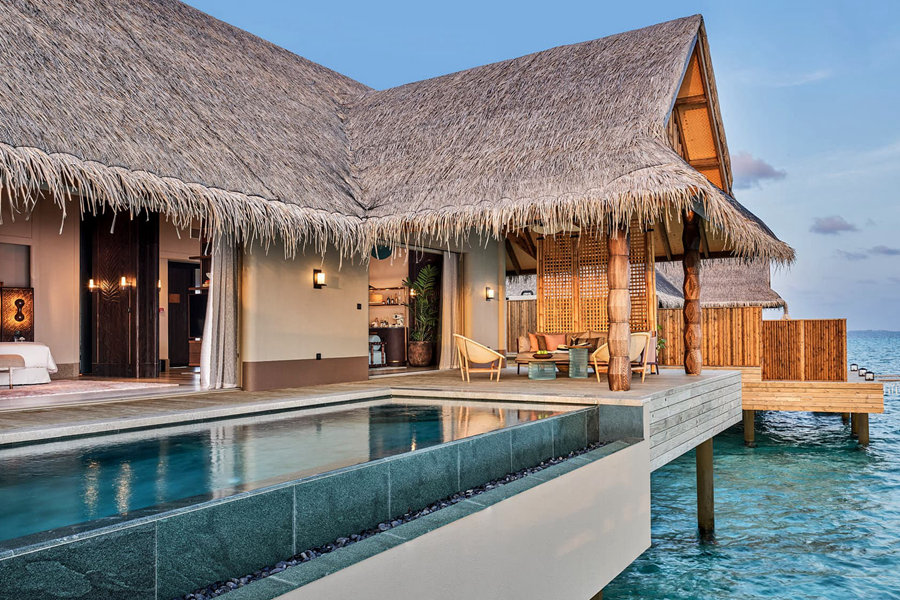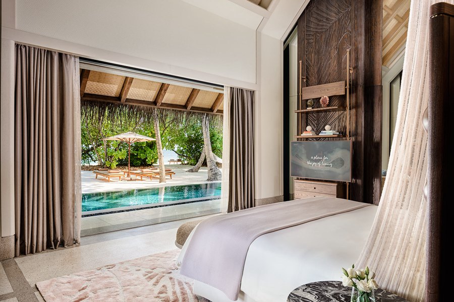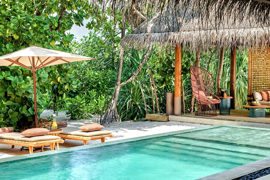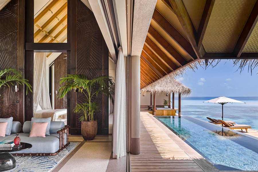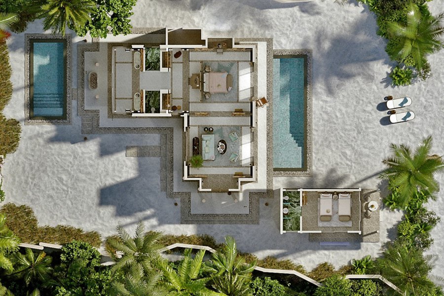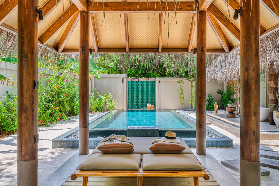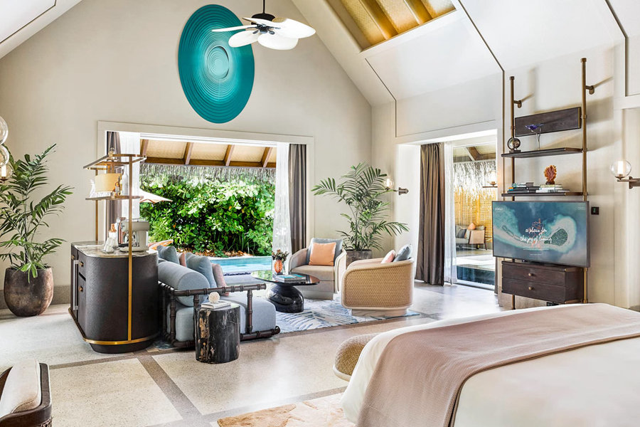 房型介绍:就算是基础的沙滩别墅,也拥有超大私人泳池,夸张的是室内外面积达到了近700平米。从我们豪华的一居室海滩别墅浸泡在海滩,花园和海景马尔代夫。精心挑选的艺术品,一个私人海滩花园和一个无限大的游泳池。