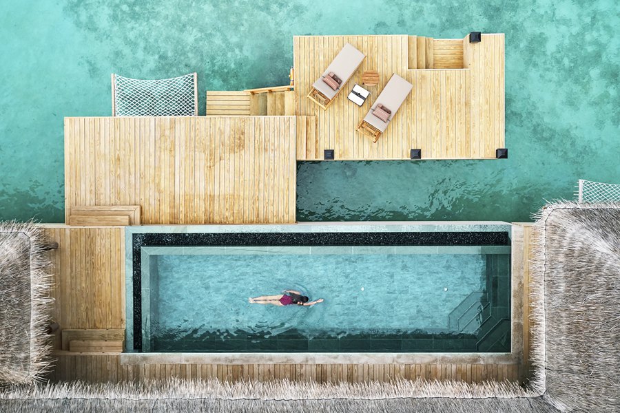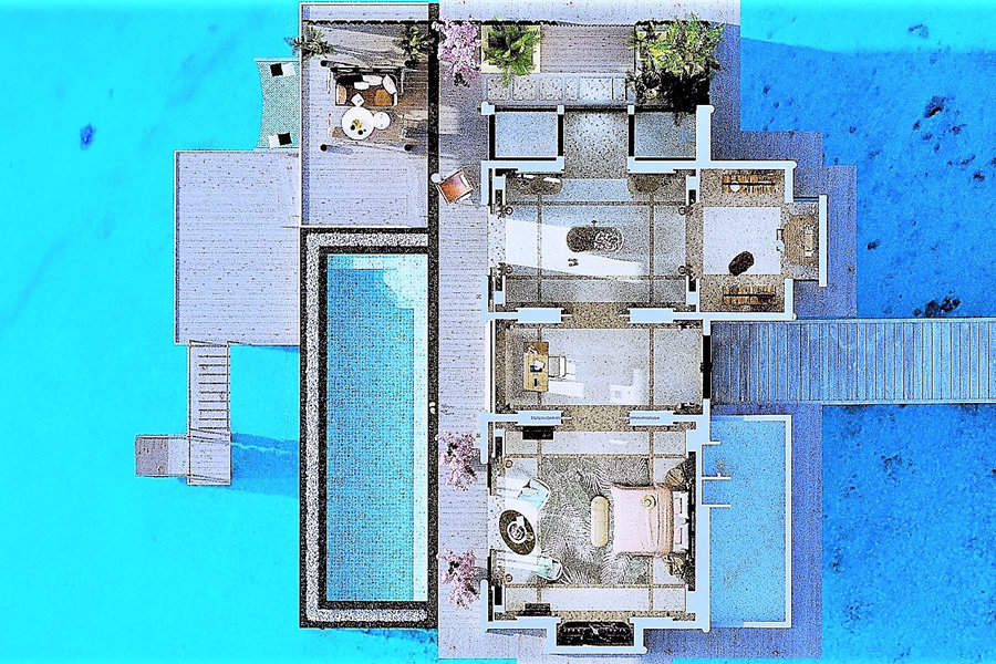 房型介绍:虽然是基础的泳池水屋,但是室内外仍然达到了夸张的200多平米,拥有超大的私人泳池,领略海上生活的魅力,一个无与伦比的豪华度假体验在等待着你。