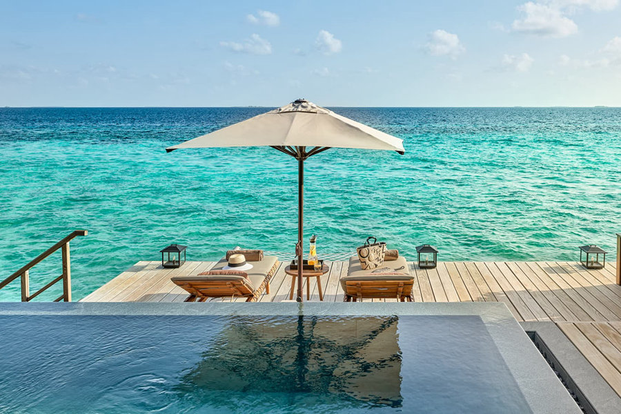 房型介绍:拥有更大的甲板空间,客厅可以俯瞰印度洋波光粼粼的海水,设有图书馆,叹为观止的泄湖美景。
