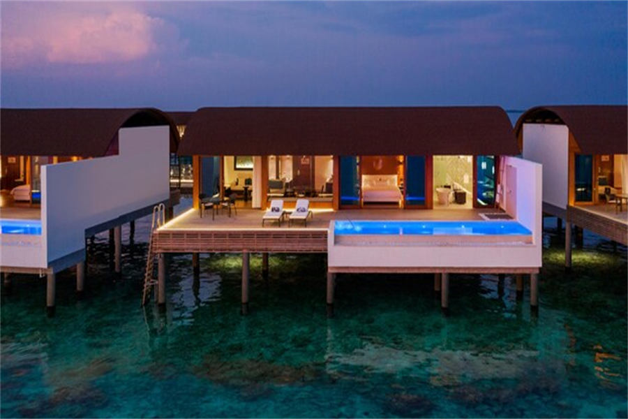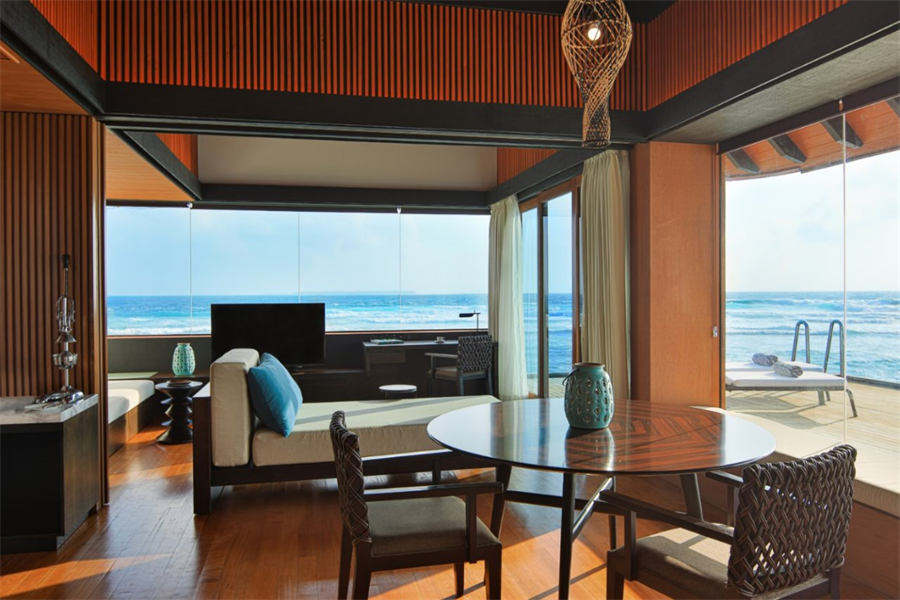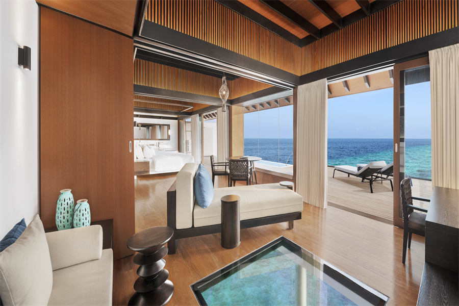 房型介绍:水上泳池别墅的面积有194㎡,和水上别墅最大的区别是,有配备了独立的私人泳池。超大空间为您的度假之旅带来更好的舒适感。景观视野相当宽阔,最具特色的是客厅的超大玻璃地板。