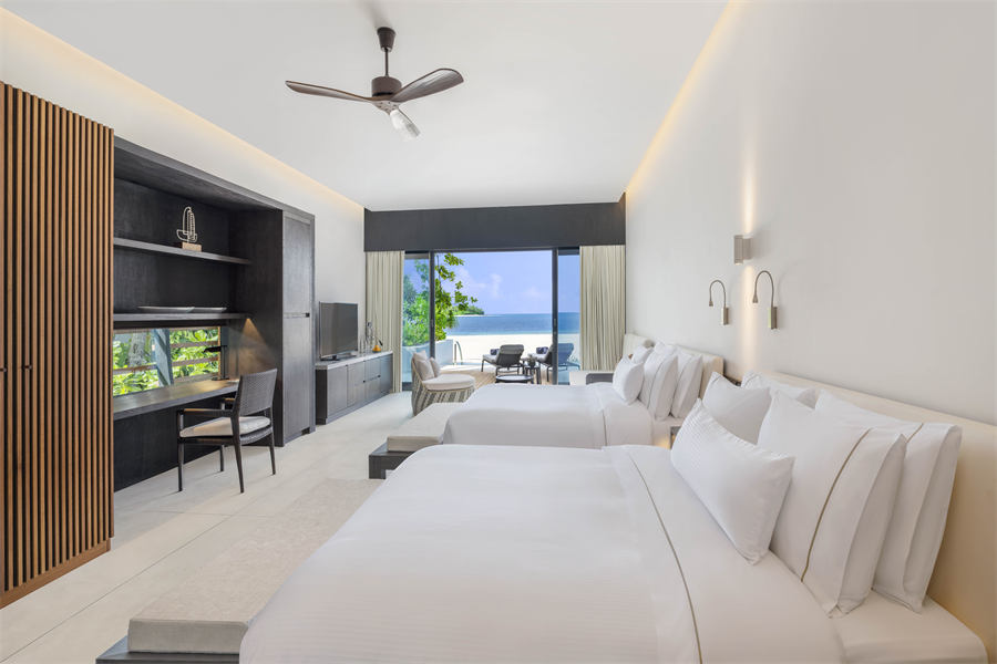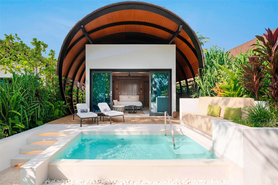 房型介绍:天梦海滩泳池官邸足有508㎡,全岛仅有1栋的最大房型。有着宽阔的阳台、厨房和休息区,以及一个17米长的私人泳池,还有一个单独的保姆房。两个卧室相互独立,都带独立卫生间,特别适合两家人一起来度假。