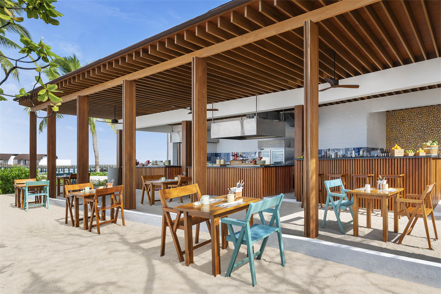 餐厅介绍:餐厅明亮而通透,俯瞰酒店的泳池,欢迎光临,惬享风味美食。创意美食新鲜又健康,所有菜品均甄选天然食材精心烹制而成,满足您和您孩子们的美食渴望,让所有人在马尔代夫欢度活力满满的充实一天。