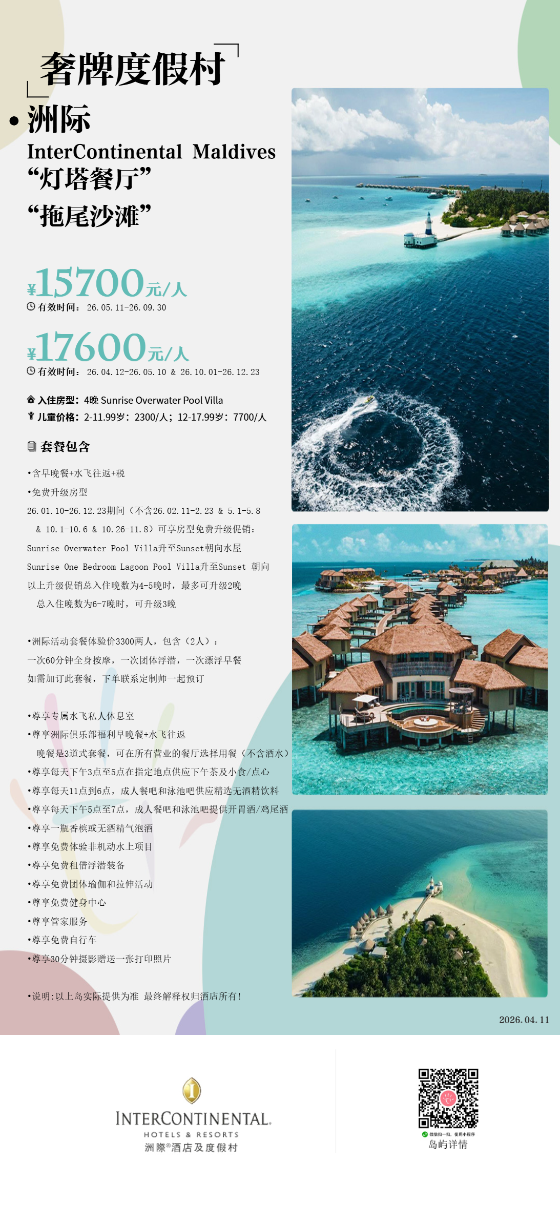 马尔代夫洲际马穆纳古InterContinental Maldives Maamunagau Resort,2019年9月才开幕,经过3年疫情,针对中国市场的价格非常亲民,甚至远远低于其档次定位。并且疫情期间预售度假村中最良心的度假村,不但多次给客人延期,甚至恢复以后不让客人多付一分钱就能入住,让众多预售度假村自行惭愧,难怪洲际深受国人喜爱。本身其品牌定位应该划分到7星,由于价格仅仅只有6星,不得不划分到6.5星。洲际虽然在全球100多个国家拥有超过4000多座度假村,但是马穆纳古却是在马尔代夫的第一座度假村,旗舰标杆!因为多岛泄湖,随手出片背景不会是单调的提夫尼蓝,更多色彩和元素,是一个会让你忍不住拍拍拍的岛屿。乘坐35分钟水飞即可抵达,度假村拥有多为中文服务,想必将成为超热门度假村。