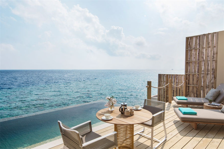 房型介绍:在自己的私人日光甲板和无边泳池中,享受最佳日落点,尽情欣赏海景。在我们11栋令人羡慕的马尔代夫游泳池别墅中,设有一张特大号床、开放式浴室、两侧有软垫日床的私人无边泳池和一个露天用餐空间。(12岁以下的小朋友不支持入住)