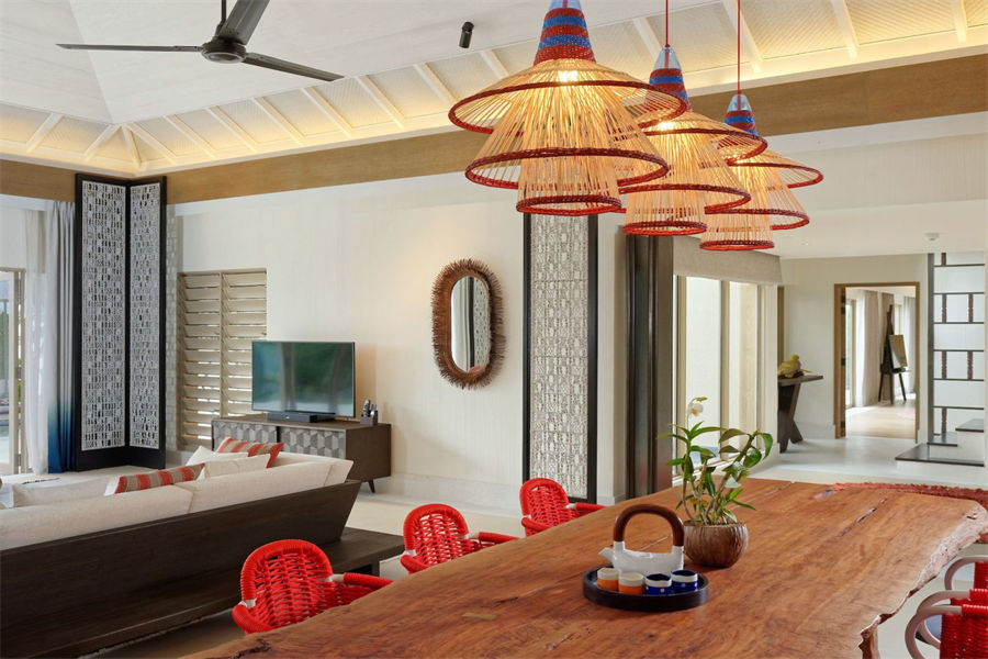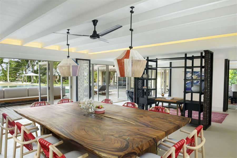 房型介绍:这座三居室海宾别墅是全岛仅1栋的海滨圣地,周围环绕着郁郁葱葱的热带绿色植物,是多代同堂的家庭或一群朋友一起旅行的理想选择。三卧室皇家海滨住宅拥有直接的海滩通道、充足的室内外生活空间,是热带岛屿生活的缩影。