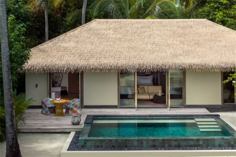 房型介绍:我们的14间马尔代夫海滩泳池别墅坐落在郁郁葱葱的绿色植物中,提供特大号床、开放式浴室、户外淋浴、私人游泳池、日光甲板和户外用餐区,让您在欣赏海滩、海洋的壮丽景色时放松身心。