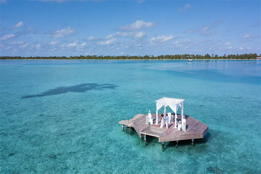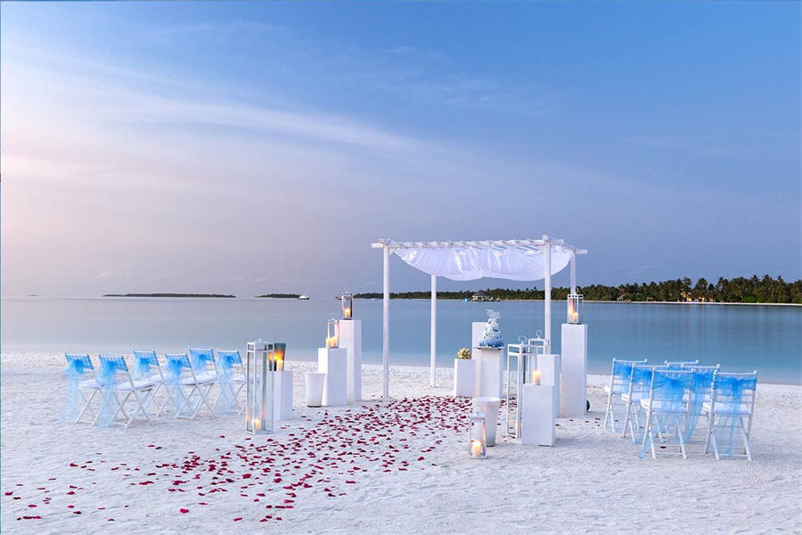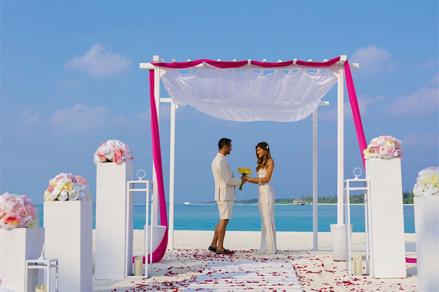 活动简介:为你生命中最美妙的时刻设置场景!这场标志性的坎迪玛婚礼是一生的盛事!站在柔软的珊瑚白沙滩上,以闪闪发光的海水为背景,你将沉浸在作为夫妻开始共同生活的兴奋中。除了普通的海滩环境、海滩上的浪漫晚餐、两人的日落巡游,以及仪式后的庆祝活动,你永远不会忘记任何事情。