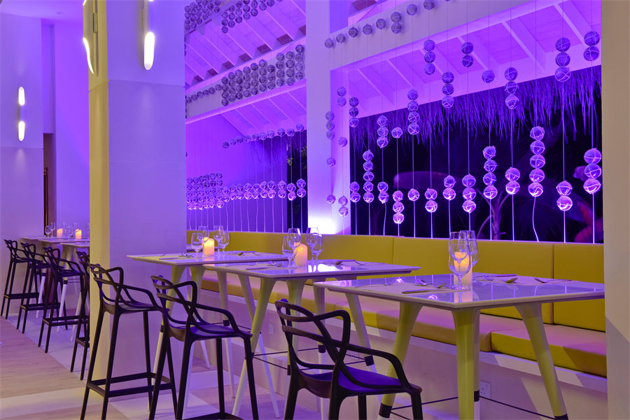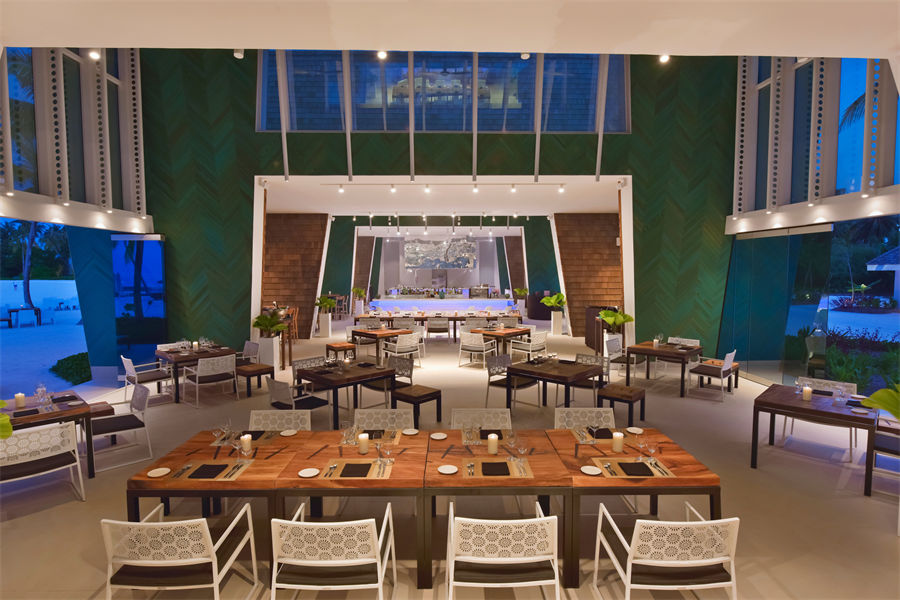 餐厅介绍:餐厅灵感来源于中国的古代建筑设计,提供正宗的中国美食和现代风格。从达鲁环礁水域新鲜捕获的鱼到多汁的龙虾和螃蟹,应有尽有!从展示柜中进行选择,让我们的厨师为您准备一场难忘的盛宴!前往只有成年人才能进入的隐藏酒吧,可以通过库尔迷幻隧道进入,在那里,现场DJ演奏到深夜,酒吧男招待制作岛上最令人垂涎的鸡尾酒。