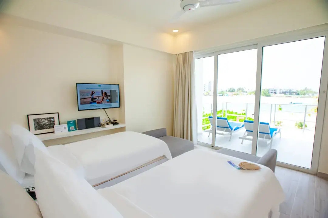 房型介绍:全岛仅1栋的双卧水上阁,面积为215㎡。在我们令人叹为观止的 3 卧室海滩泳池别墅中探索奢华和空间的缩影,这是一个宽敞的天堂,占地 215 平方米,分为两层。