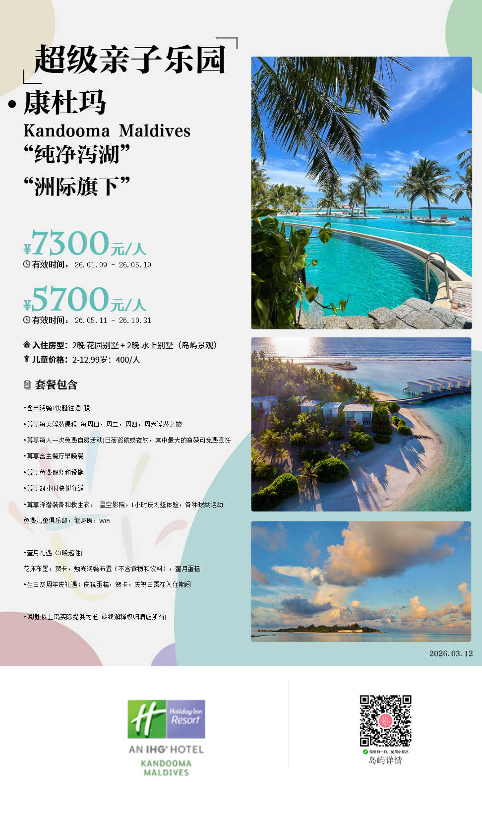 ②岛上有儿童俱乐部,是个蜜月亲子综合度假岛屿。