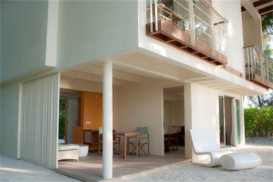 房型介绍:全岛68栋的沙滩房,面积为71㎡,采用复式结构。其中16间是花园景观,52间是海洋景观。空间宽敞;主卧可欣赏壮观海景,一楼直接连通海滩,浴室、起居和用餐区域设备齐全。别墅设有完备的现代设施和服务,包括枕头选单和室外露台,让您尽享隐私与舒适。