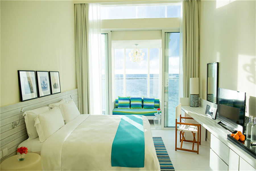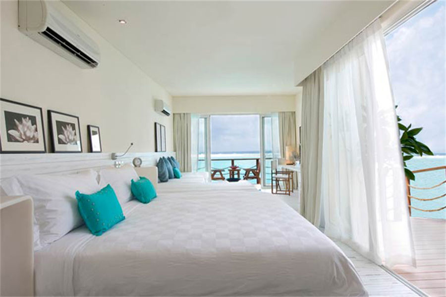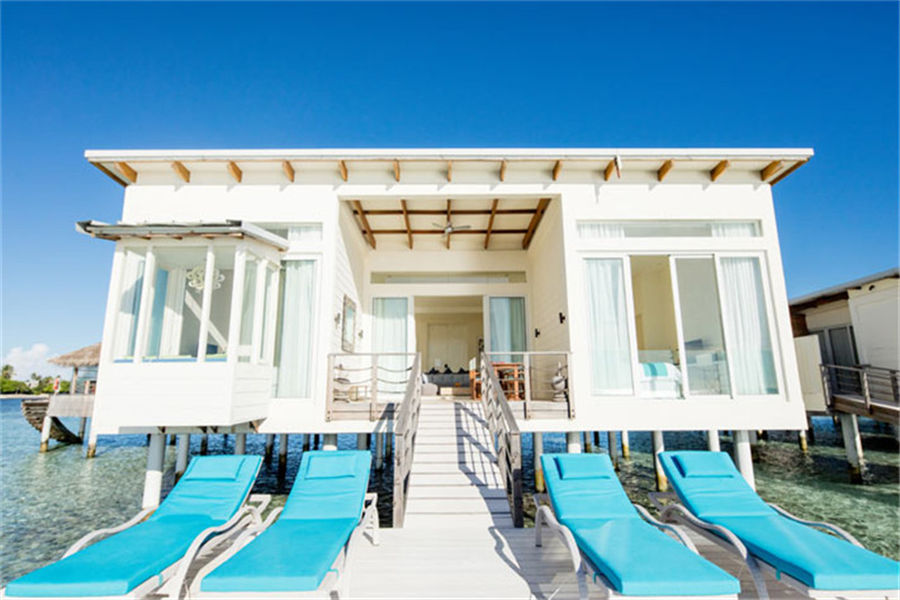 房型介绍:全岛19栋的水上别墅,面积为85㎡,其中5间为岛屿景观,14间为海洋景观。立于澄澈碧蓝的海水之上,是海岛生活的典范。我们的私人露台和日光浴阳台直接与海相连,设有休闲躺椅和水上吊床,是您沐浴阳光的完美之选。