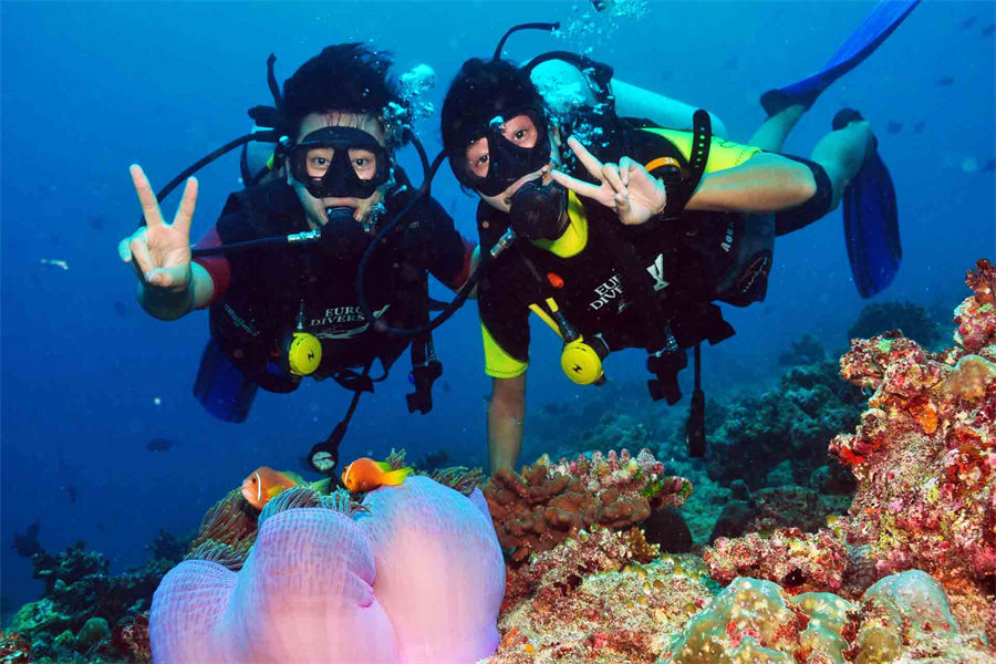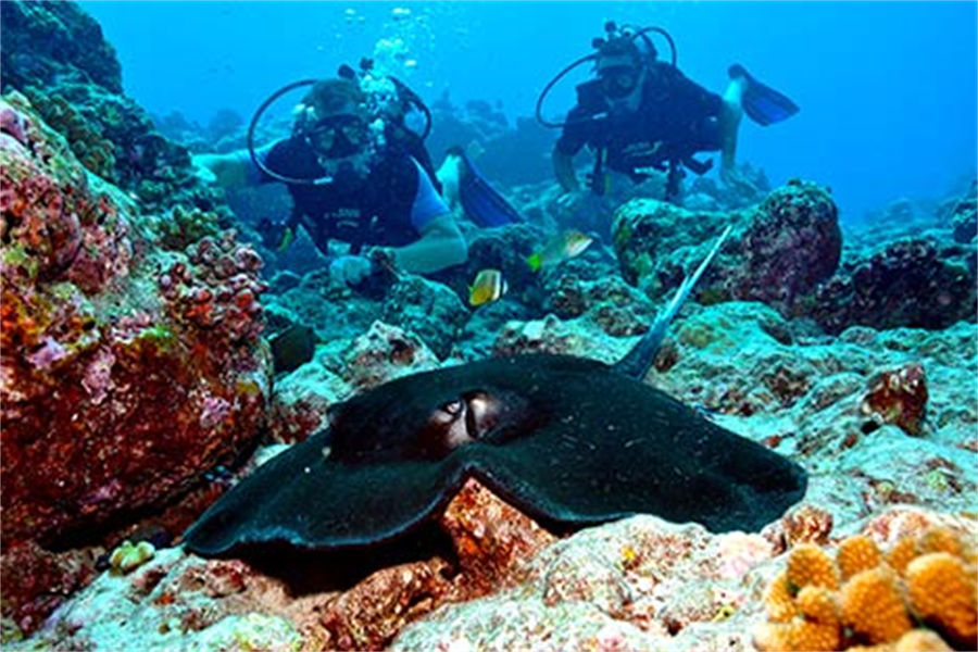 活动简介:潜入印度洋深处,探索水下神奇世界。在探索迷人海域的同时,您将看到马夫鱼、蝴蝶鱼等各种色彩斑斓的鱼群,还有鲨鱼、鳐鱼、礁鲨等奇异的海洋生物。康杜玛度假村可根据您的要求和喜好,组织适合您的潜水游。