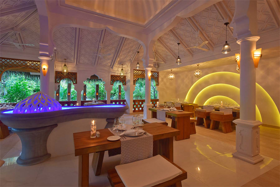 餐厅介绍:岛上有6个酒吧分别为Fung酒吧、Dhoni酒吧、Laguna酒吧、Pool酒吧、Sand酒吧。提供美味的鸡尾酒,白天和黑夜,并提供了许多晚上娱乐。