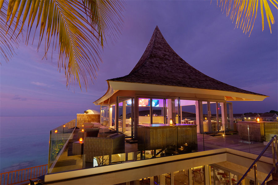 餐厅介绍:Sky Bar酒吧位于海平面以上7米处,纯粹为融合舒适与奢华的纯粹隐私而设计。从六种不同的套餐中进行选择,与您心爱的人或一群亲密的伙伴共度量身定制的夜晚。在Sky Bar,您有机会看到马尔代夫星空下的流星。