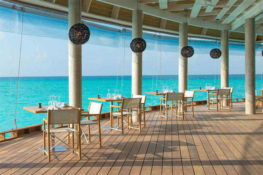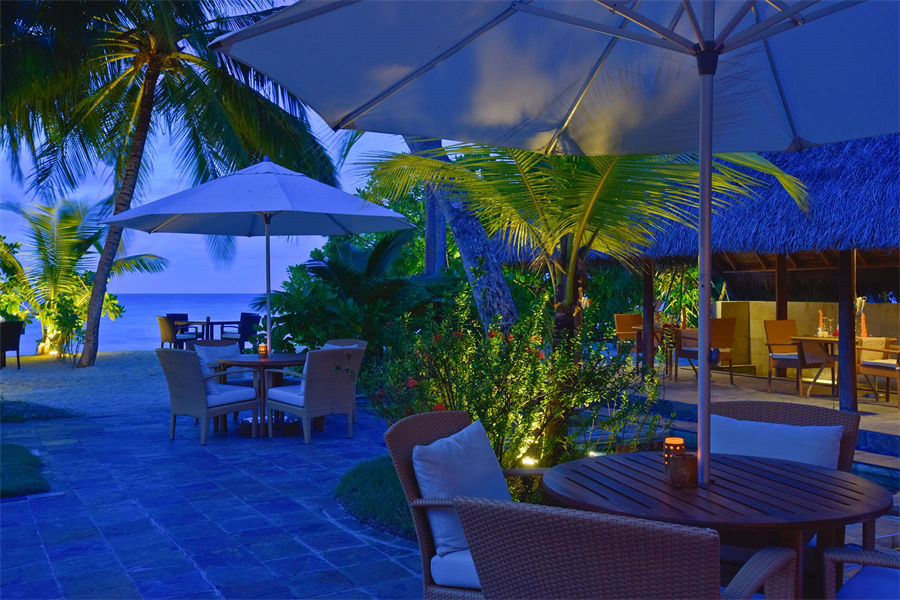 餐厅介绍:只接待6岁以上儿童的Thereef餐厅,位于岛上延伸出来的狭窄沙滩上,是该度假村最佳的海鲜餐厅,供应马尔代夫当地最新鲜的海鲜和进口海鲜,按照您喜欢的口味,在您面前为您做出做满意的海鲜晚餐!