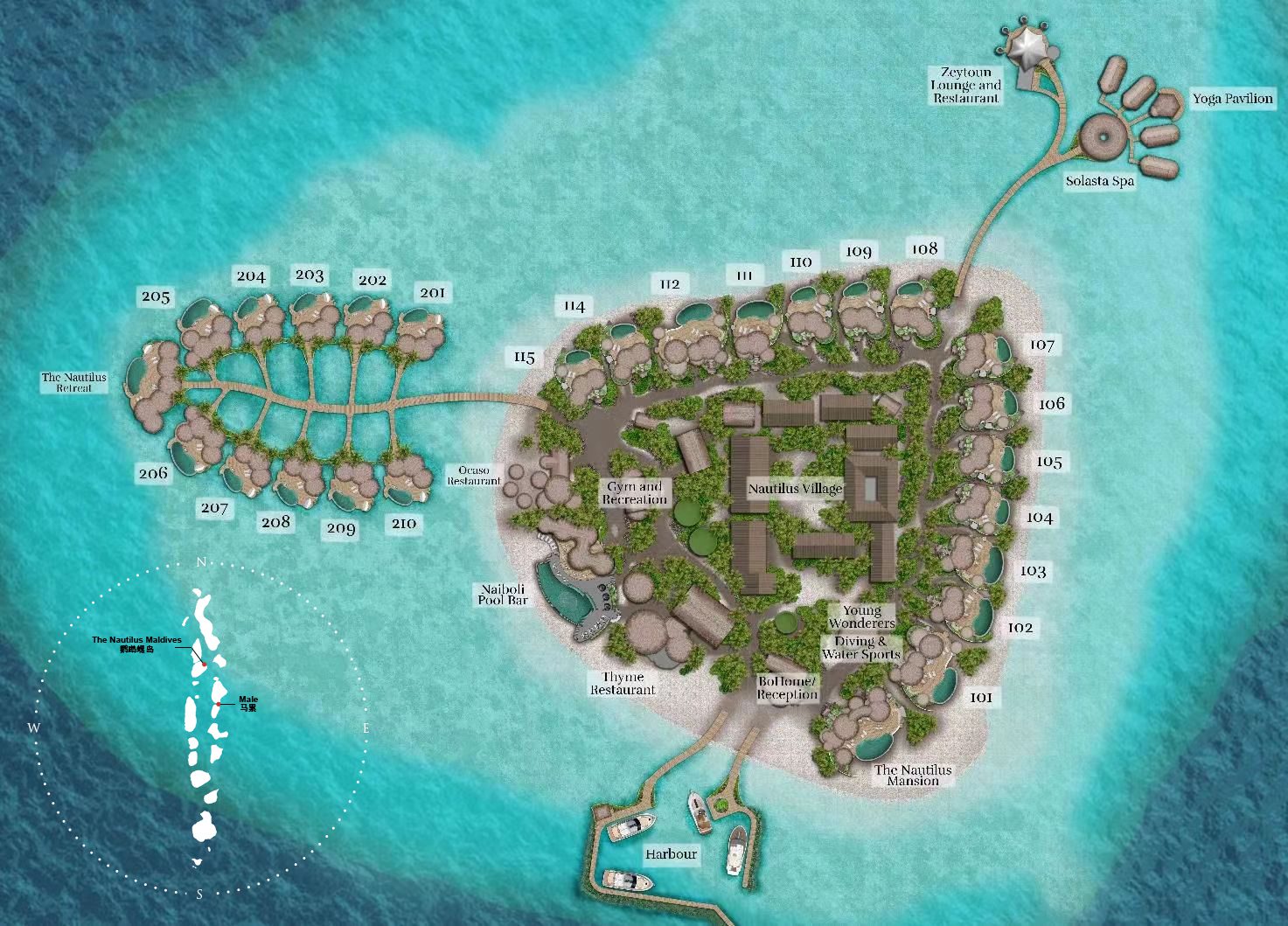 对于乘坐私⼈包机抵达的客⼈,可在当地国内机场Mafaaru提供降落服务,然后通过我们的豪华游艇NautilusOne直接接送,只需2.5⼩时。
