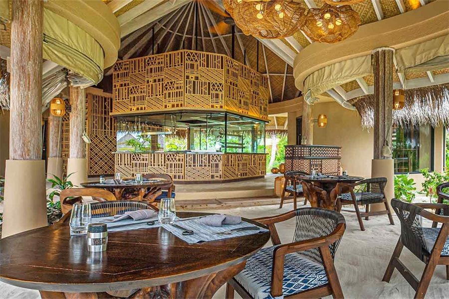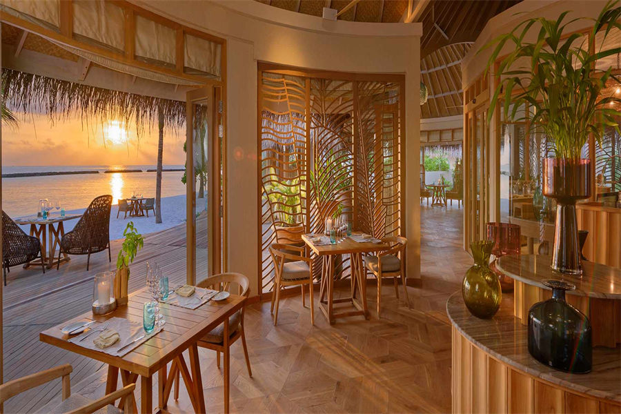 餐厅介绍:在马尔代夫璀璨的星空下,享用精美混合的饮品与美味的食物拼盘,尽情开展愉悦心情的交谈。Naiboli酒吧帮助您发现日常生活最为简约也最珍贵的极致乐趣:如日落、亲情与静谧的岛屿庇护所。露天泳池酒吧既是最佳海滨度假圣地,如客厅般的舒适氛围,令您肆意享受惬意放松之感。全天提供免费精美餐饮。可一边享受悦耳的现场音乐,一边观赏如梦似幻的免费落日景致。实现“无菜单式”点餐,只要你提出用餐需求,厨师都会尽力去满足。