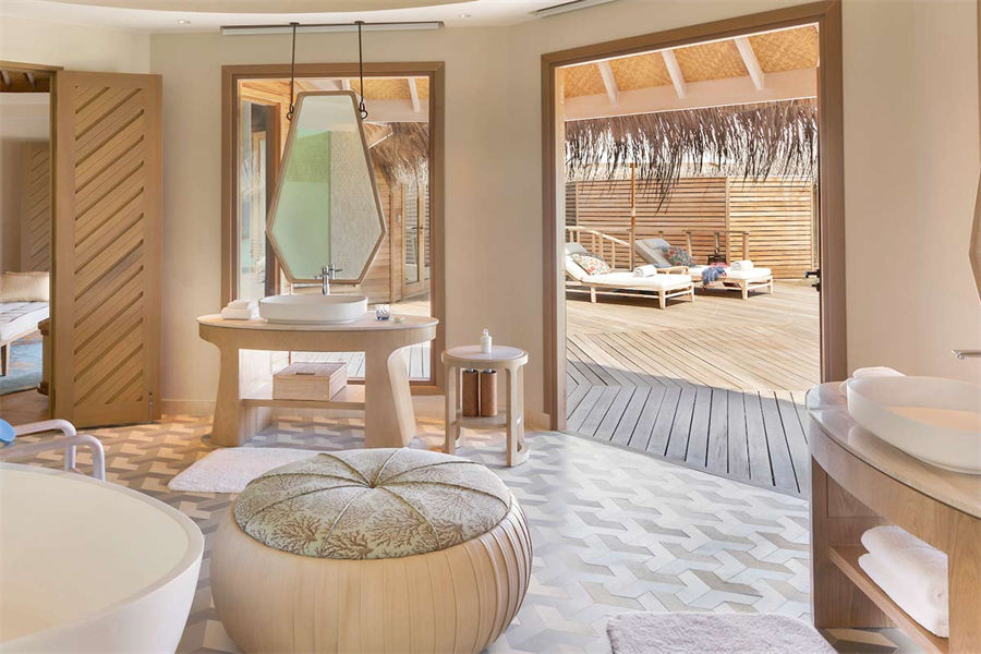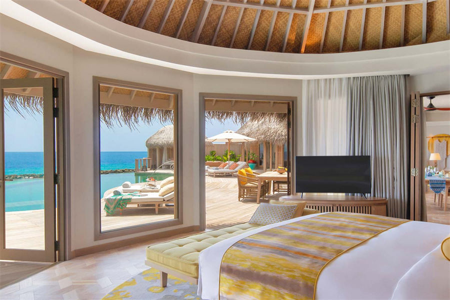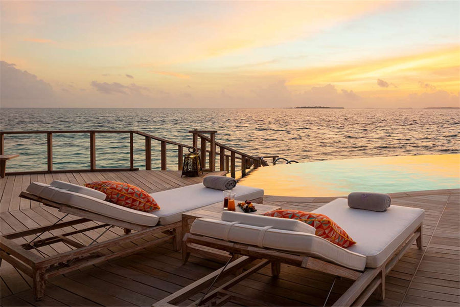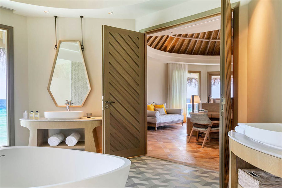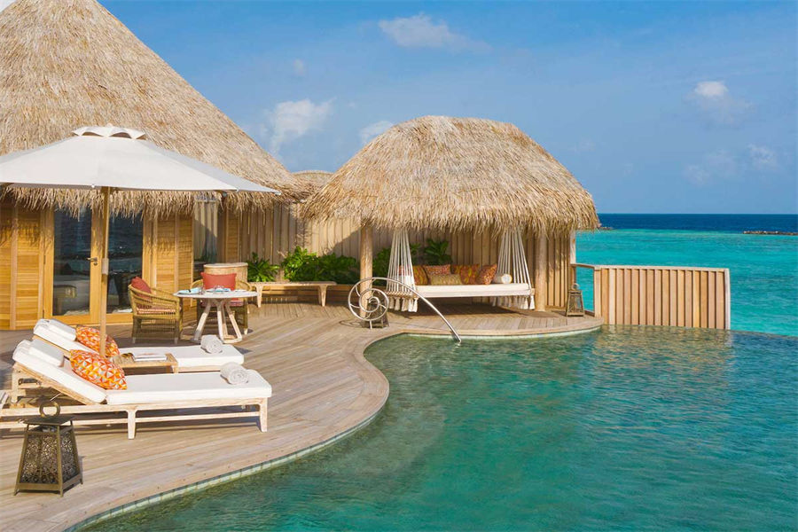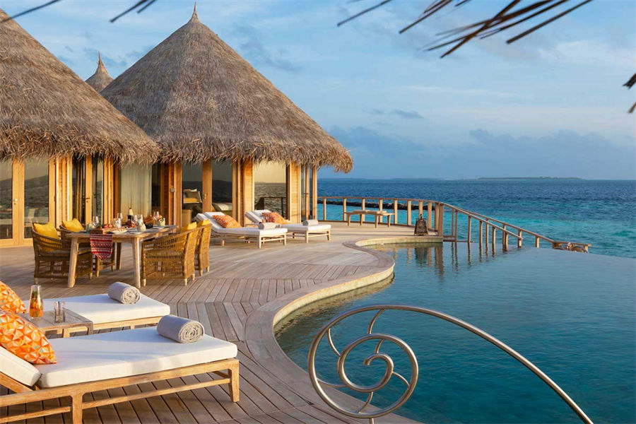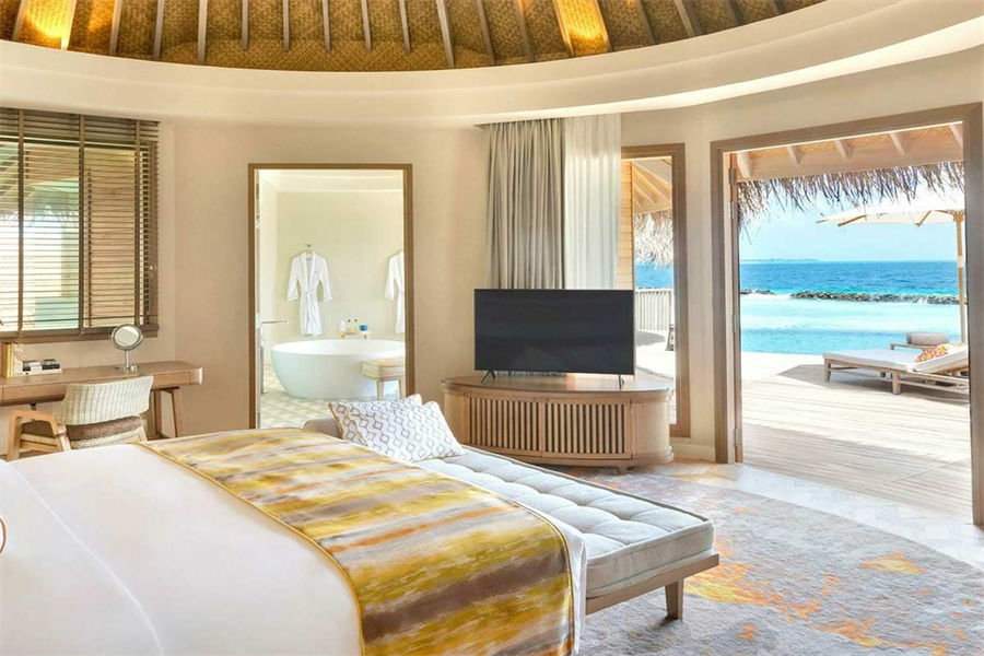 房型介绍:这些僻静的海洋别墅,以马尔代夫独有的风格,屹立在绿松石般的泻湖中间,无边泳池、阳光甲板一直延伸到地平线。螺旋式阶梯往下延伸,直通大海。