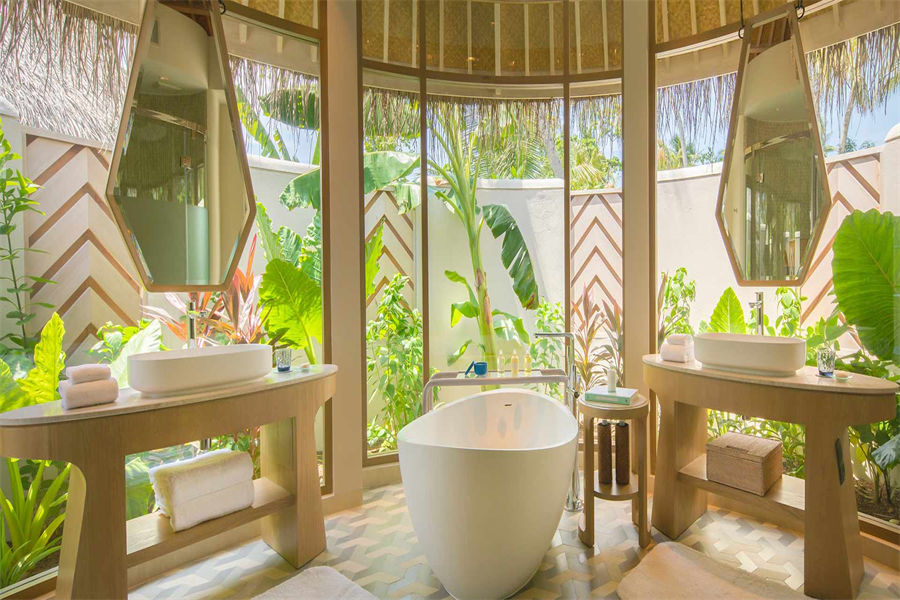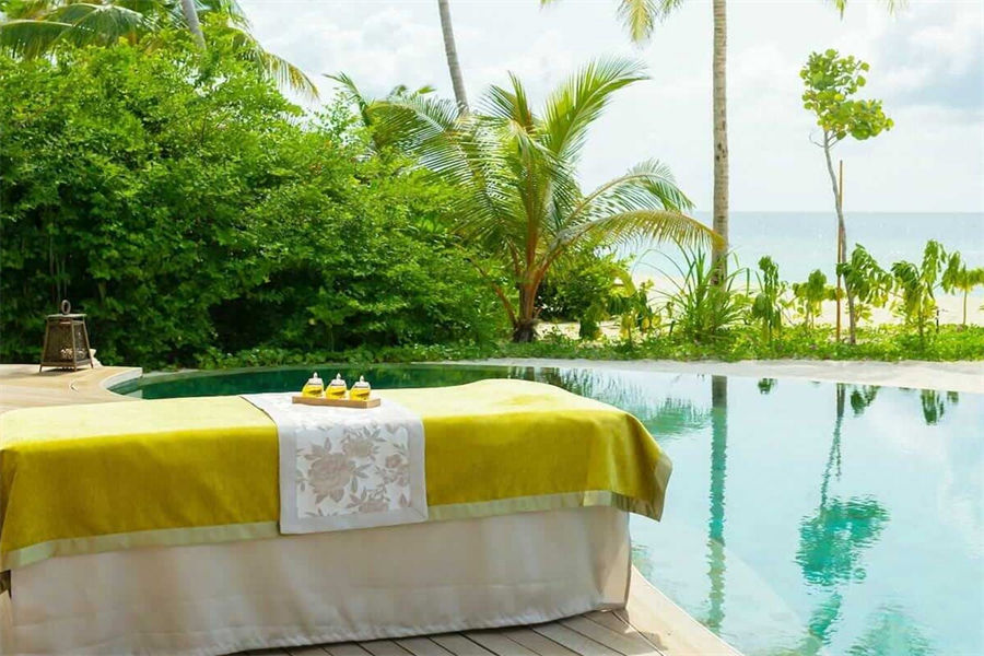 房型介绍:优雅的海滩别墅全岛9座,沿着银色细沙海岸排列着,离大海仅几步之遥。每间椭圆形的卧室都配独立客厅,不管从客厅还是卧室都可以直通宽敞的私人露台,以及花园。修剪整齐的花园,天然的植被把海滩和房间的区域隔开来,形成独立而自然的私人空间,从露台俯瞰海滩,景致一绝。另外配有室内室外的热带雨林花洒浴,置身在热带丛林的感觉,让人得到全身心的放松。