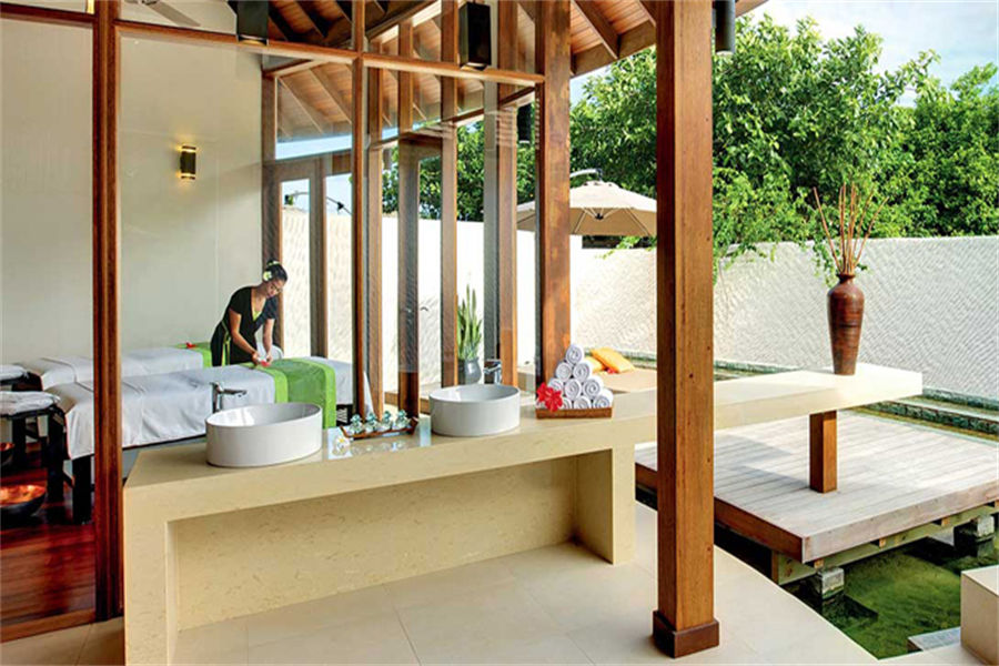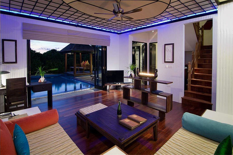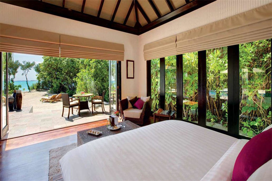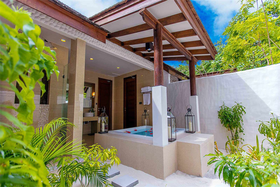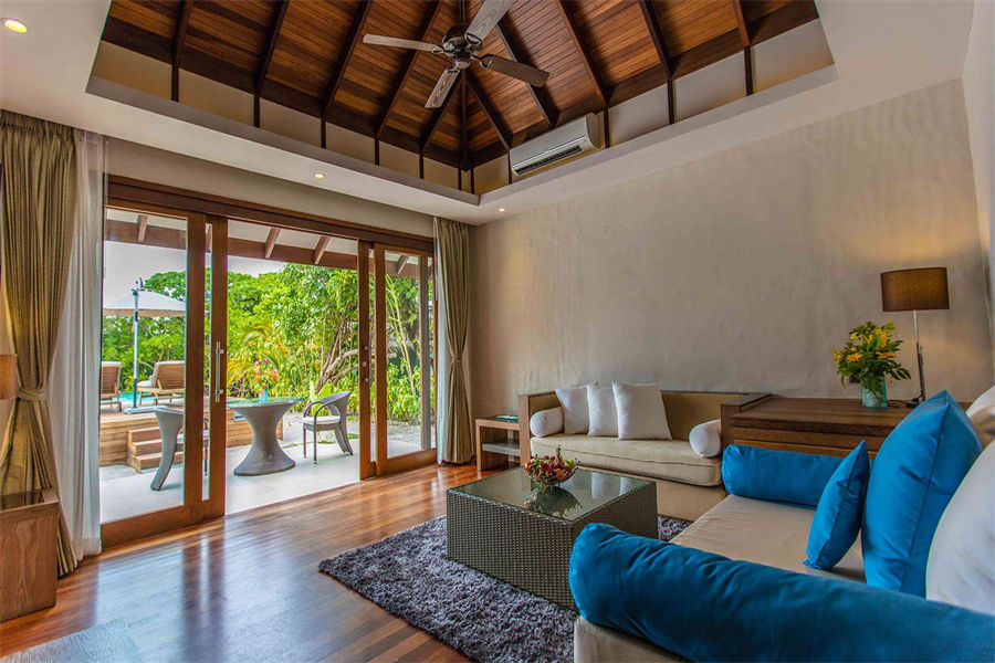 房型介绍:全岛2栋的豪华沙滩泳池住宅面积为315㎡,坐落在郁郁葱葱的热带花园中,距离海滩几步之遥,门从卧室通向别墅的露台上。拥有自己的私人管家。私人空间丰富,因为别墅设有独立的起居和用餐区。宽敞的浴室配有按摩浴缸,让您感觉轻松。