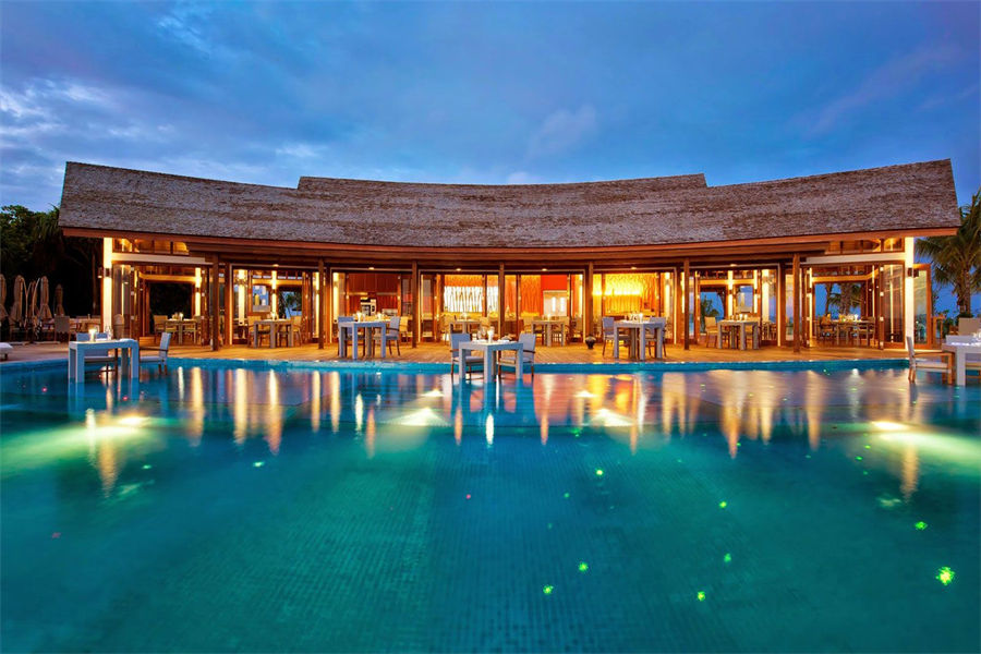 餐厅介绍:品尝汲取了亚洲和欧洲风味的菜肴。开放式早餐,午餐和晚餐,可以在一天的任何时候池畔用餐,同时领略岛的壮丽景色。