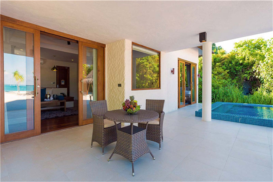房型介绍:全岛18栋的带按摩泳池的海滩住宅面积为215㎡,别墅本身包括一个起居和用餐区,主卧室和大浴室,配有按摩浴缸。其私人的白色沙滩可通过通风宽敞的卧室直接进入。带泳池的海滩公寓配有自己的个人管家,以帮助您量身定做并满足您的需求。