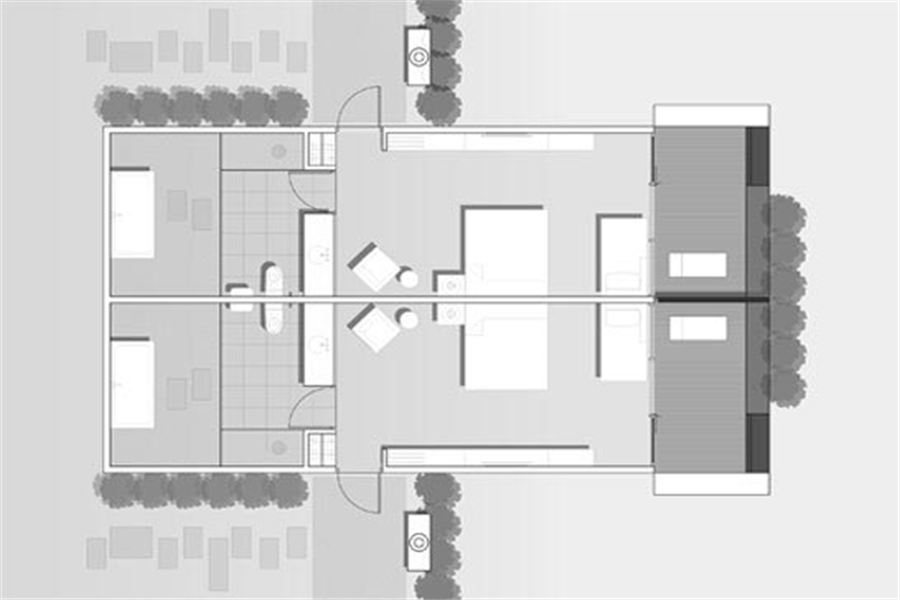 沙滩别墅面积偏小,68平方米,但能容纳3大或2大2小;201-206泄湖水屋拥有防浪堤