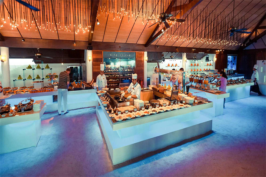 餐厅介绍:VIBES酒吧是一个能满足您所有设想在沙滩休闲的完美地方,即使是在马尔达夫炎热的太阳下,品种众多的简单轻的小吃让您充满能量,室内游戏让您避开正午的阳光.
