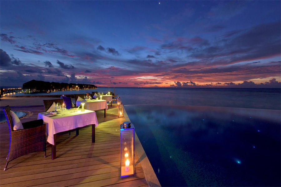 餐厅介绍:泳池酒吧位于莉莉岛的日落方向,是一个人们最喜爱的放松的的地方,它既拥有着安静放松的环境,还有无与伦比、一望无际的海洋景象。