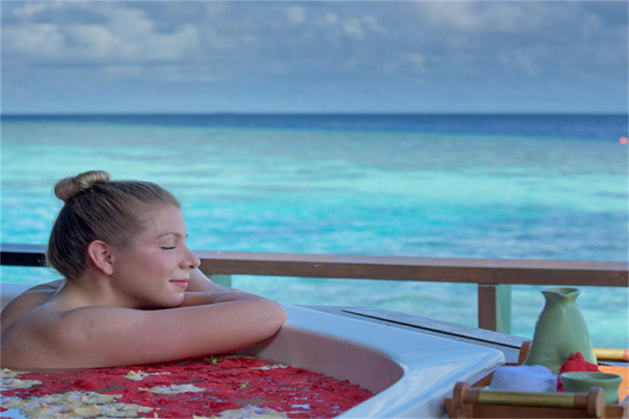 房型介绍:90㎡的泻湖别墅,全岛16栋。别墅提供马尔代夫独特魅力的5星级以及朴实无华的豪华与放松,拥有直接进入泻湖和热带环绕的私人露台,也可以和您的另一半在户外按摩浴缸享受浪漫时光。