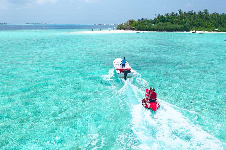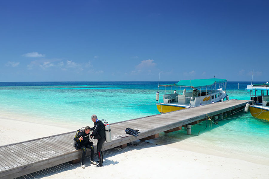 岛屿长年与专业机构Diverland Maldives合作,为客人提供种类丰富的浮潜、潜水及出海项目,其中Sting Ray City(刺鳐城)堪称不可错过的体验。出海安排在下午,仅需8分钟船程,就能近距离观赏包含黄貂鱼(Sting Ray)、大护士鲨(Nurse Shark,2-3.5米)在内的超多鱼类,甚至可以选择下海浮潜,近距离不接触,体验感拉满。入住后即可在潜水中心了解及预约所有项目。