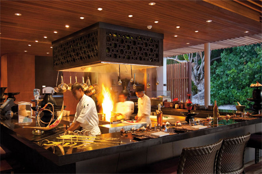 餐厅介绍:岛上的招牌餐厅,坐落在郁郁葱葱的绿色植物中,每天都有一顿美味的烧烤晚餐和一个开放的酒吧。传统的烤架与燃木烤箱相结合,与开放式厨房的装饰相得益彰,客人可以在那里观看厨师的工作。
