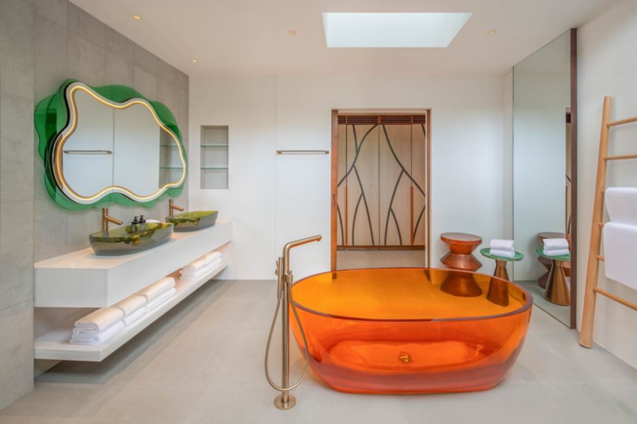 带按摩池座椅的超大无边水池、环绕式阳光露台、大型主套房和和可欣赏印度洋全景的精致套房,这一切营造了一个极其放松、豪华的娱乐平台。别墅含两间卧室,分别配置一张大床和两张双人床,每间卧室均有独立浴室。还有客厅、大型室内酒吧和餐厅、书房、厨房、超大型户外休闲区、娱乐区和78㎡的私人游泳池。