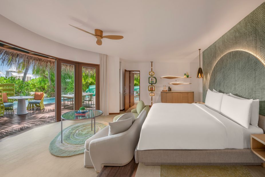 房型介绍:绿洲海滩双卧别墅全岛仅有3栋,面积为323㎡,配置了大理石浴室。我们的马尔代夫海滩别墅汲取了岛上茂密红树林的原始美韵,并以简约现代的设计重新诠释。粗犷的纹理、自然色调与开放式空间营造出动静相宜的氛围--您专属的私人基地,距沙滩仅几步之遥。无论是沉浸于宁静之中,还是纵身跃入泳池,这里都是赤足奢华与狂野活力的交汇之地。海滩时光就此升级。在重新装修时新增了滑梯,更增一分趣味。
