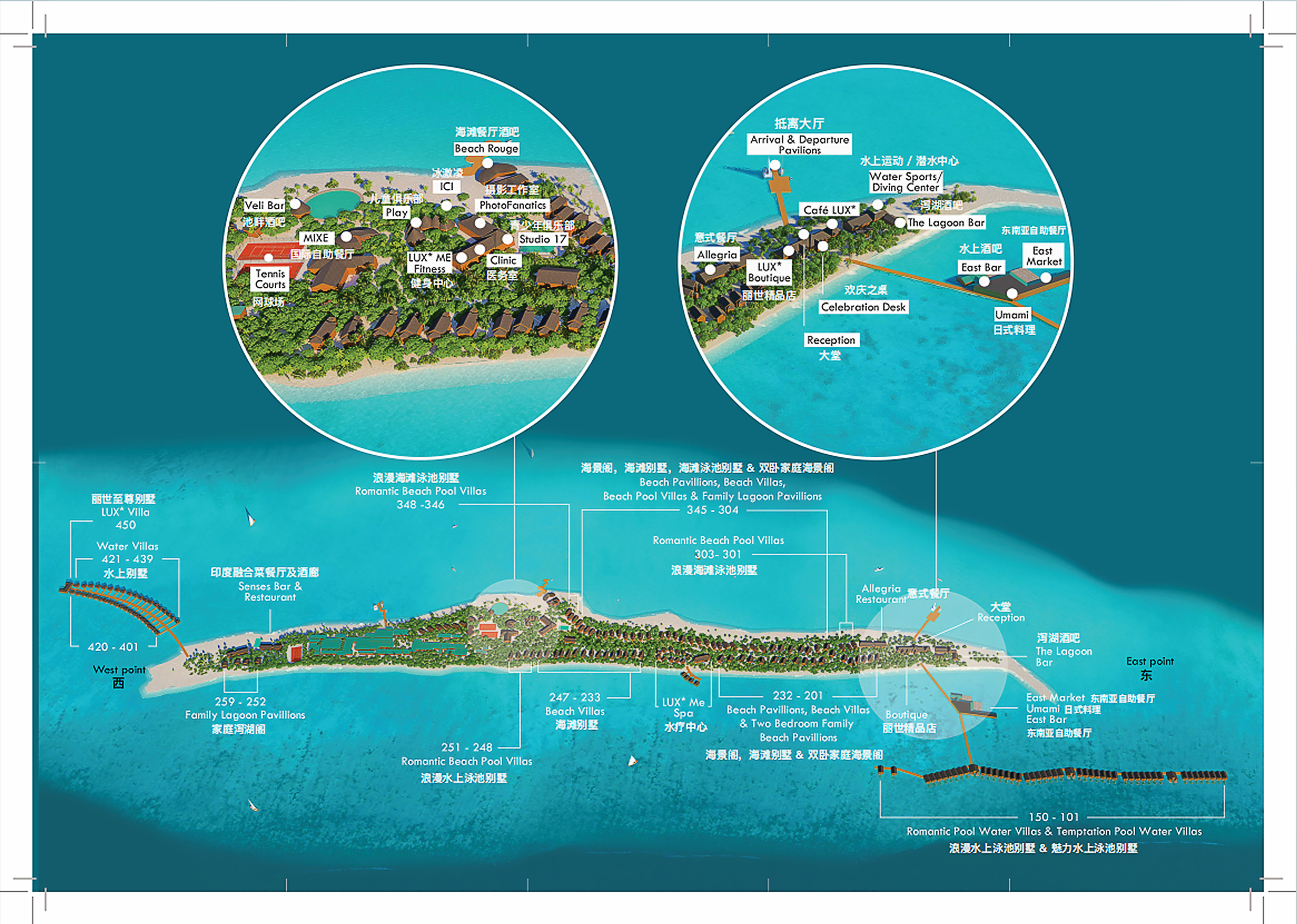 马尔代夫南丽世LUX* South Ari Atoll,Maldives,作为一个独一无二岛屿旅游胜地,LUX岛周围环绕着一望无际的白色沙滩,水晶一般清澈的礁湖、以及延绵数里的大海,蔚蓝与青绿色的海水交相辉映。美丽的LUX岛让游客流连忘返、乐此不疲。这里安宁如天堂,4公里长的白沙滩被郁郁葱葱的热带植被所覆盖。岛屿上环绕着一个巨大的泻湖,里面有各式各样的海洋生物,色彩缤纷的热带鱼游来游去,使得湖水色彩斑斓。LUX岛是马尔代夫几大大岛屿之一,岛上的设施很齐全。由于岛屿较大,岛屿1.8公里长,200米宽,从岛一边走到另一边大概需要40分钟,不过有专门接送的电瓶车,只要招手他就会停下来,全部都是免费的。岛上花团锦簇就像一个巨型公园一般,每一处都是风景。