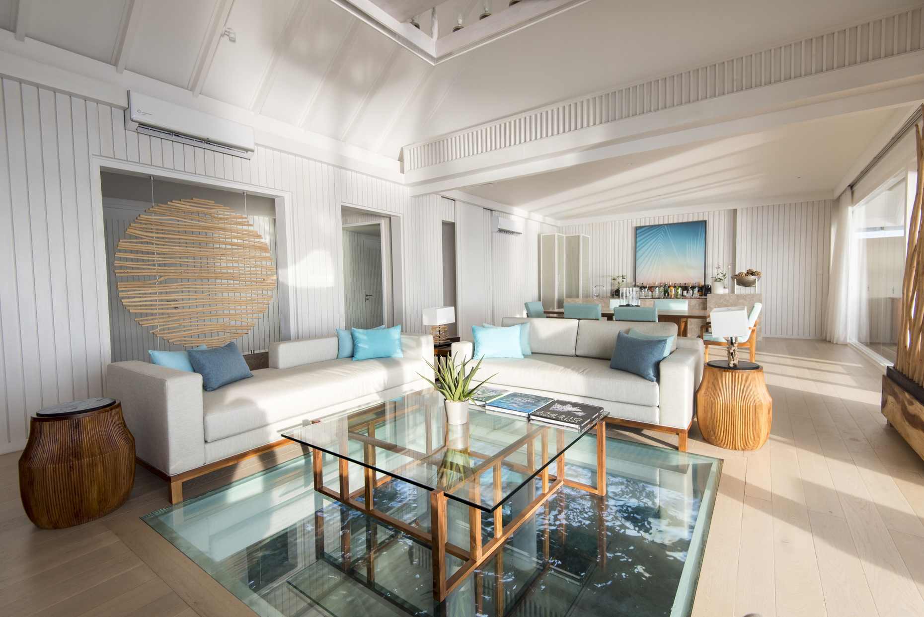 房型介绍:环礁湖景、岛屿风光,无可比拟;岛屿生活、极致奢华,尽在丽世别墅。沉浸在无边无际的泳池,与环礁湖融为一体,在起居室的玻璃地板下方,海洋生物在您脚下畅游,千变万化。别墅的主卧套房配有纯手工制作的丽世‘酣然入睡’床具,广阔的起居室可直通甲板。