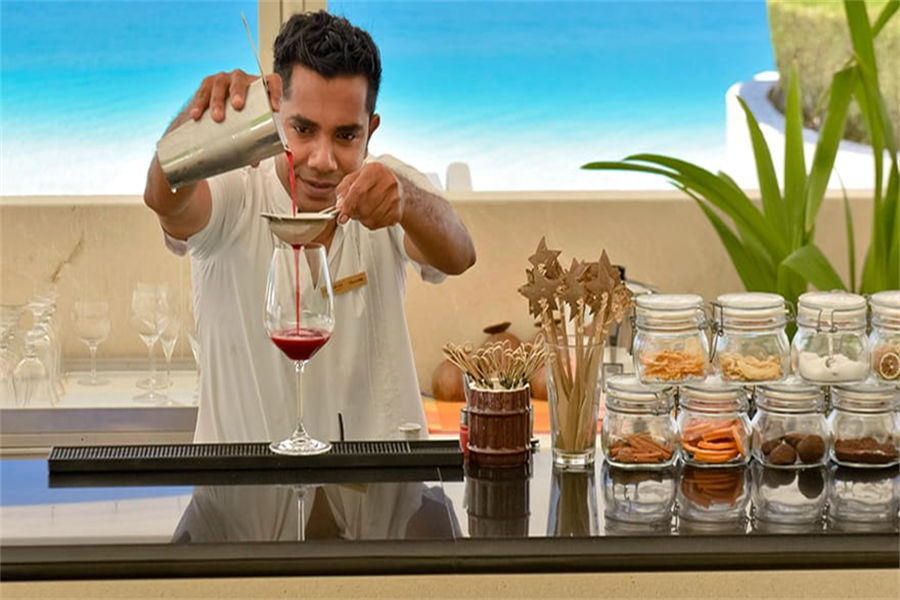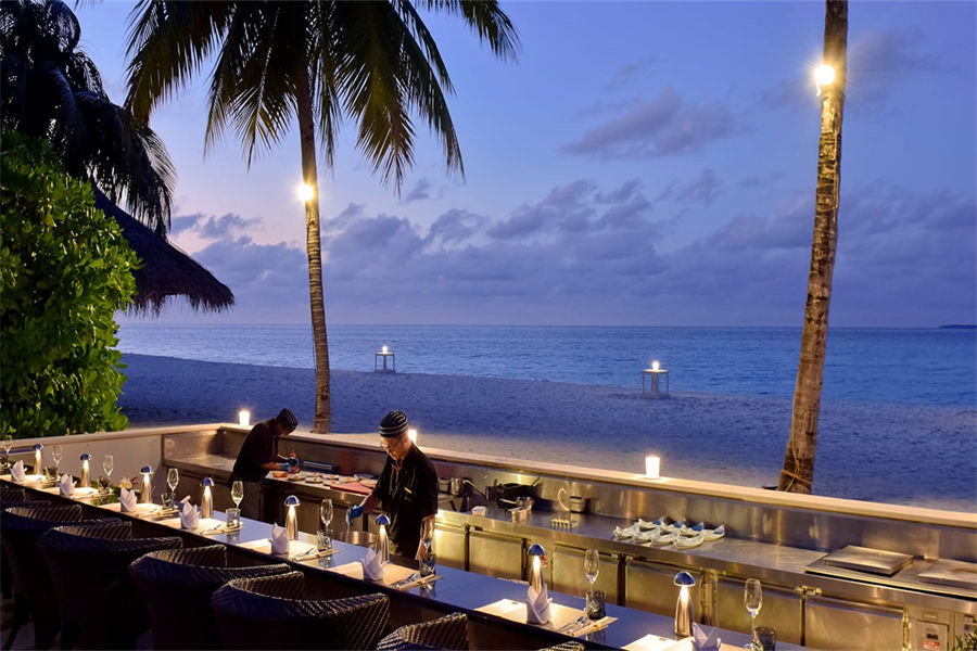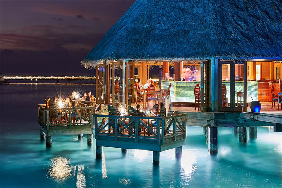 餐厅介绍:伦格里酒吧(Rangali Bar)位于主泳池旁,沙子铺地,提供丰富的午餐和晚餐,也有当代鸡尾酒,更有固定的现场音乐和活动。早上 10 点开始营业。