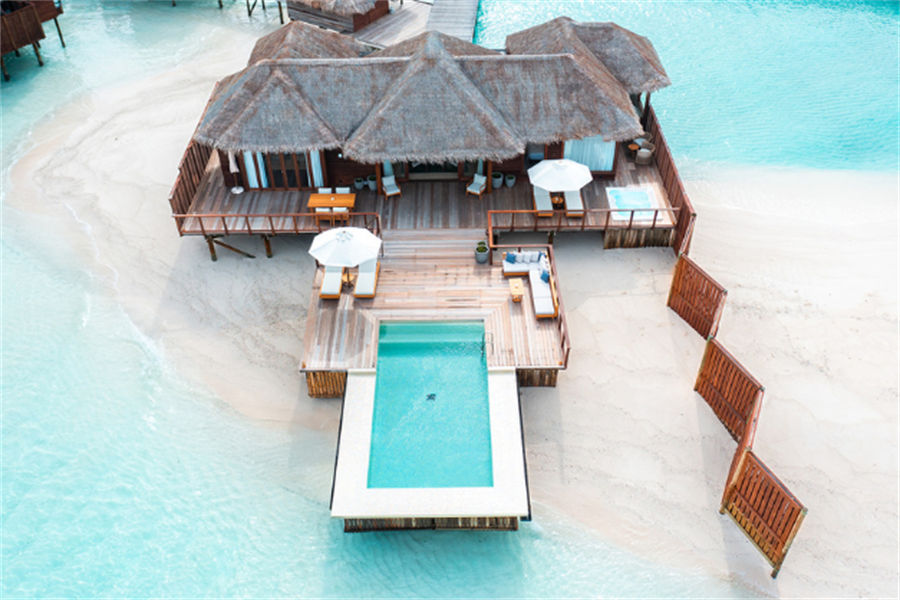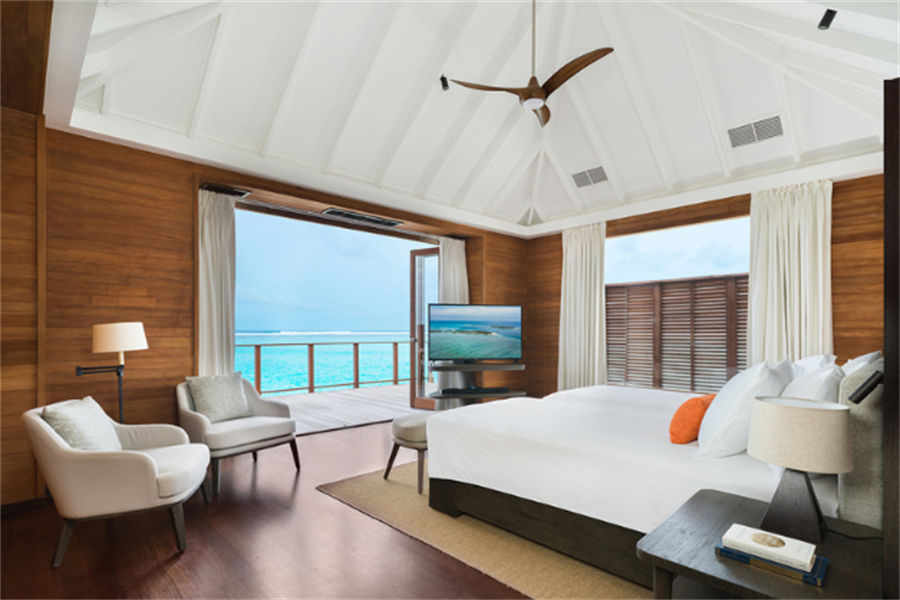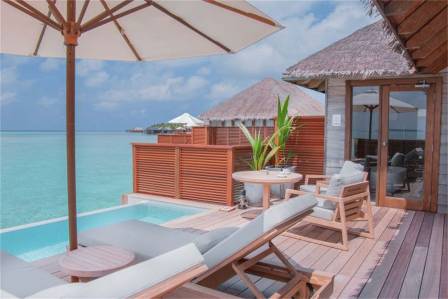 房型介绍:6套豪华水上泳池别墅面积115㎡,位于僻静的成人专用岛屿,专为寻求终极奢华体验的情侣而设计,非常适合度蜜月。这栋别墅享有无尽海洋的壮丽景色,是马尔代夫日落的完美背景。